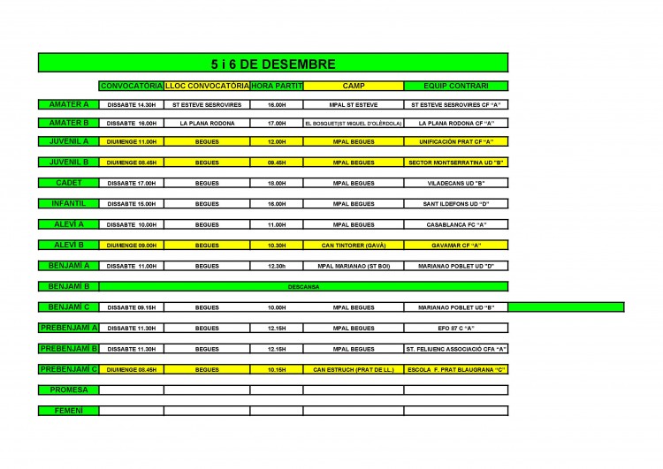- Partits el cap de setmana del 5 i 6 de desembre
