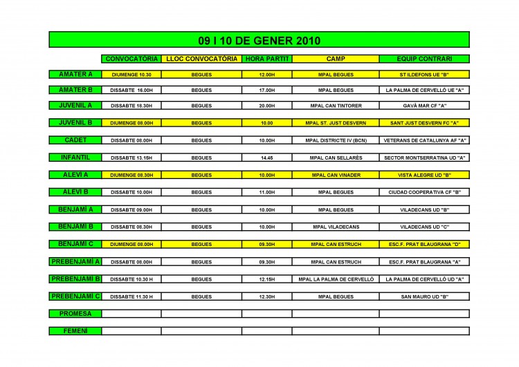 - Partits per al cap de setmana del 9 i 10 de gener