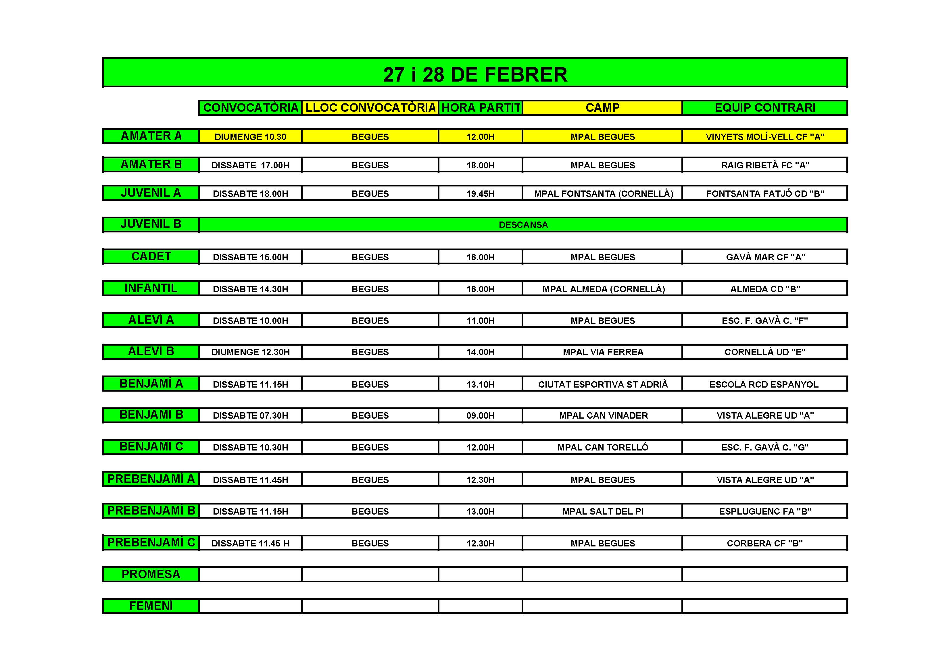 - Partits el cap de setmana del 27 i 28 de Febrer