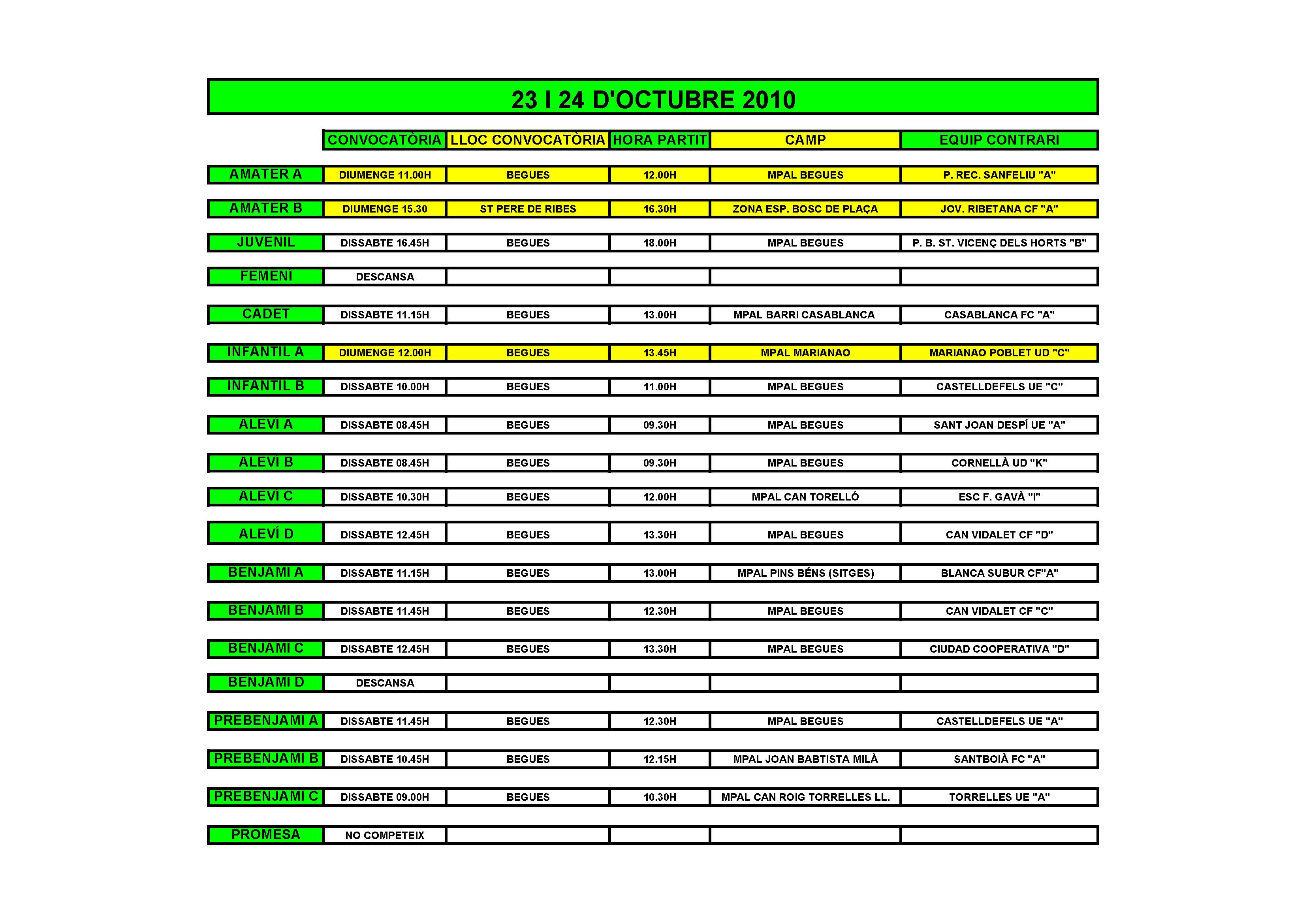 - Partits el cap de setmana del 23 i 24 de octubre