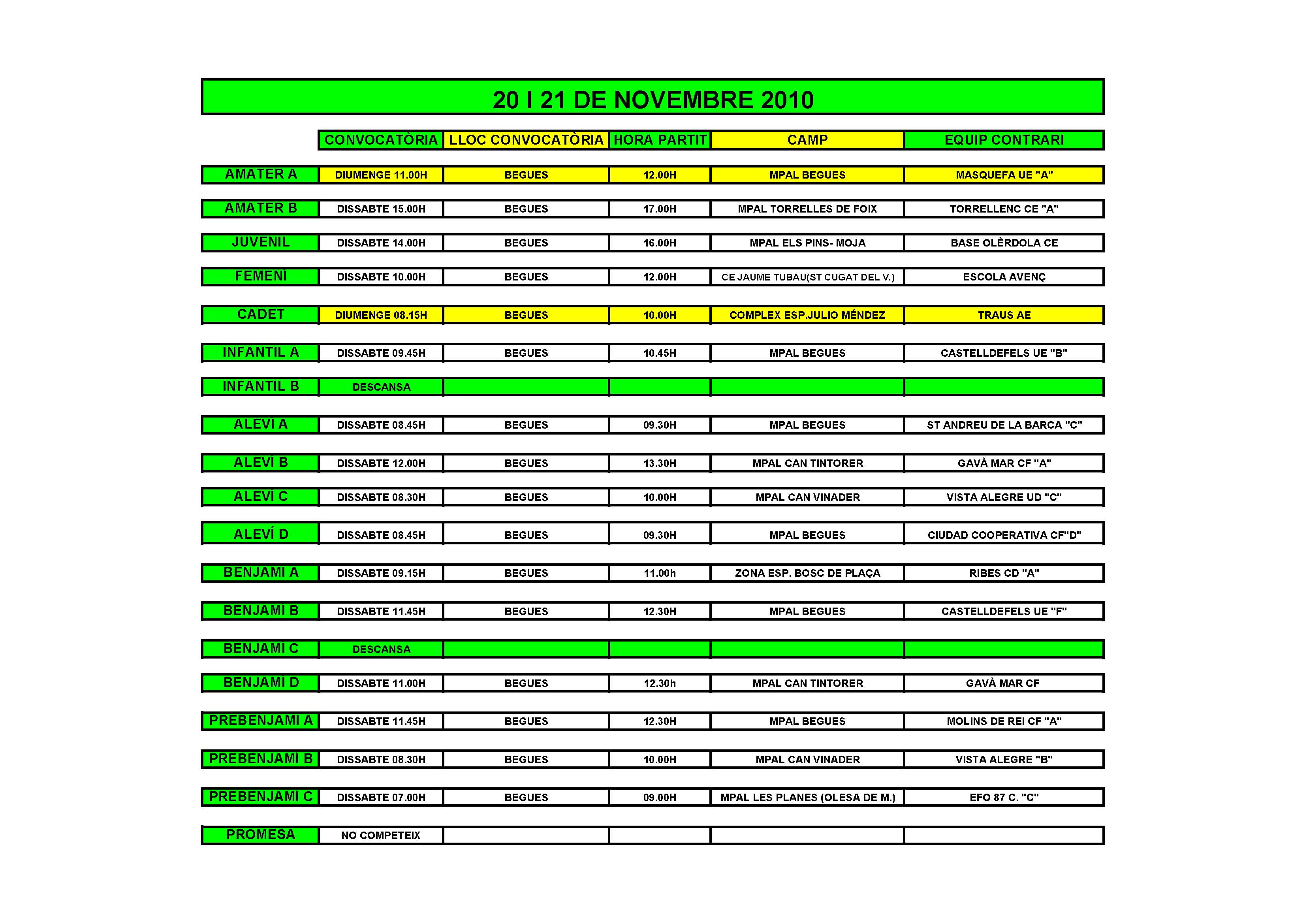 - Partits per al cap de setmana del 20 i 21 de Novembre