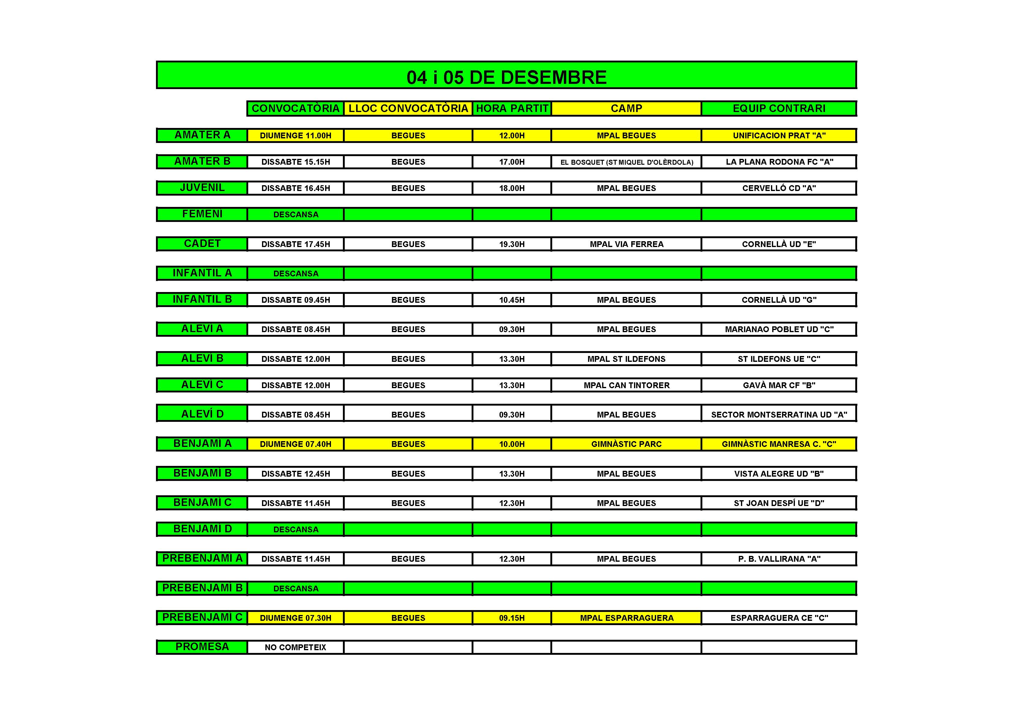 - Partits el cap de setmana del 4 i 5 de Desembre
