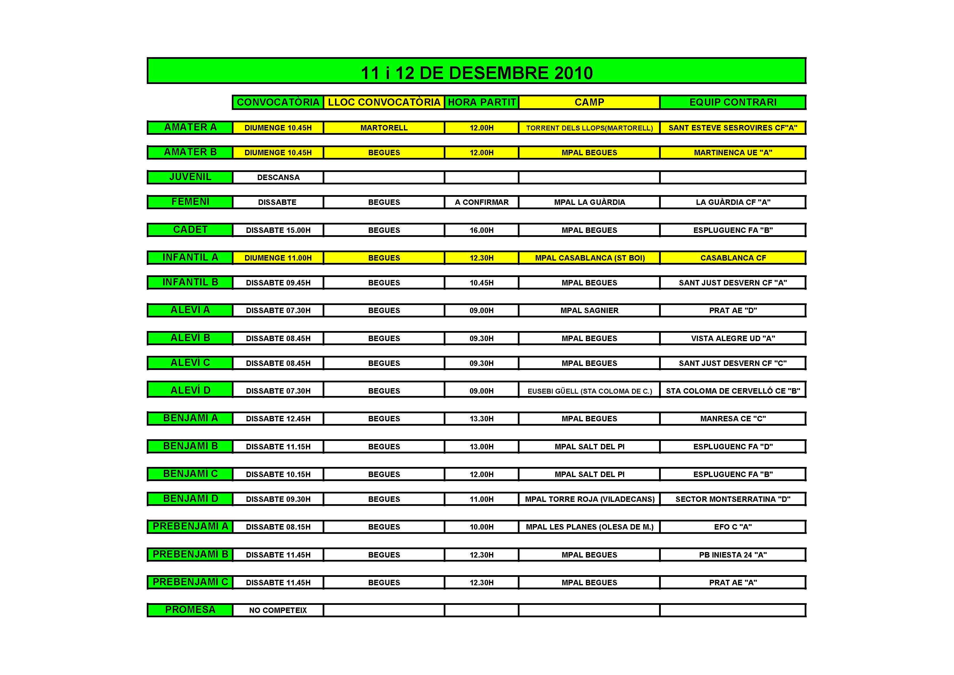 - Partits el cap de setmana (11 i 12 de Desembre)