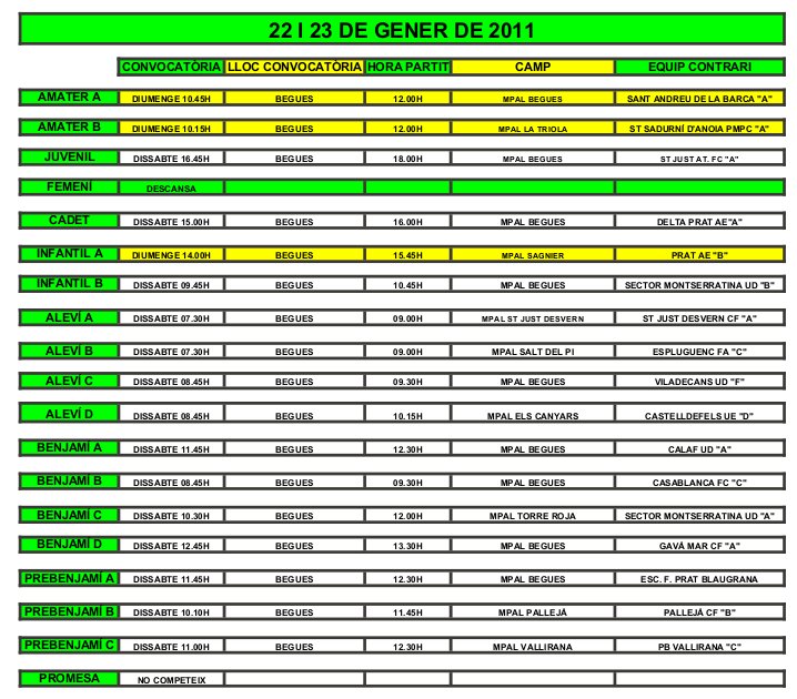 - Partits per al cap de setmana del 22 i 23 de Gener