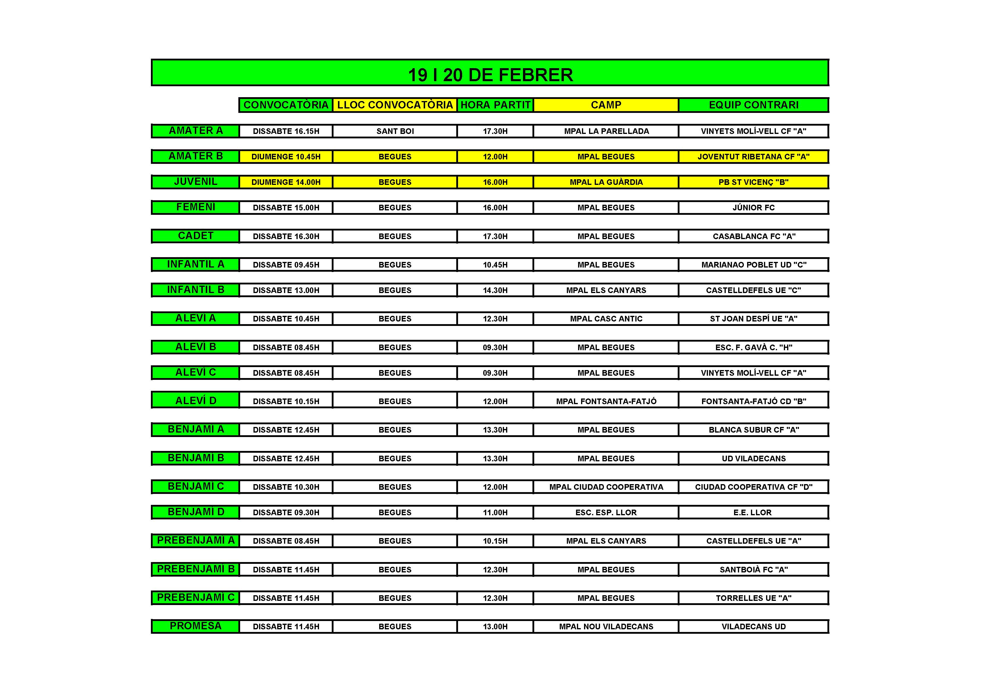 - Partits el cap de setmana del 19 i 20 de Febrer