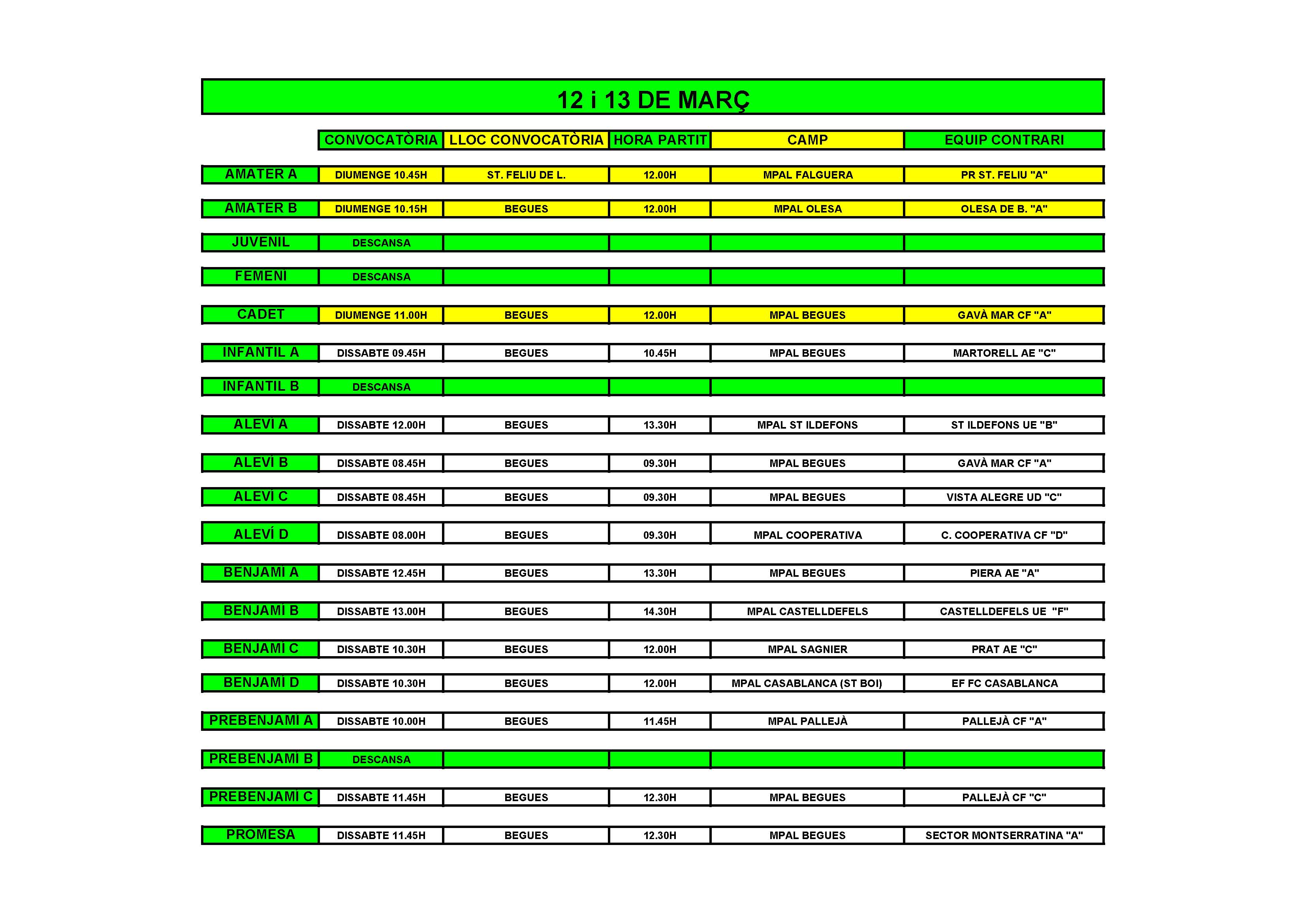 Adjunt trobareu el calendari de partits per al cap de setmana.
