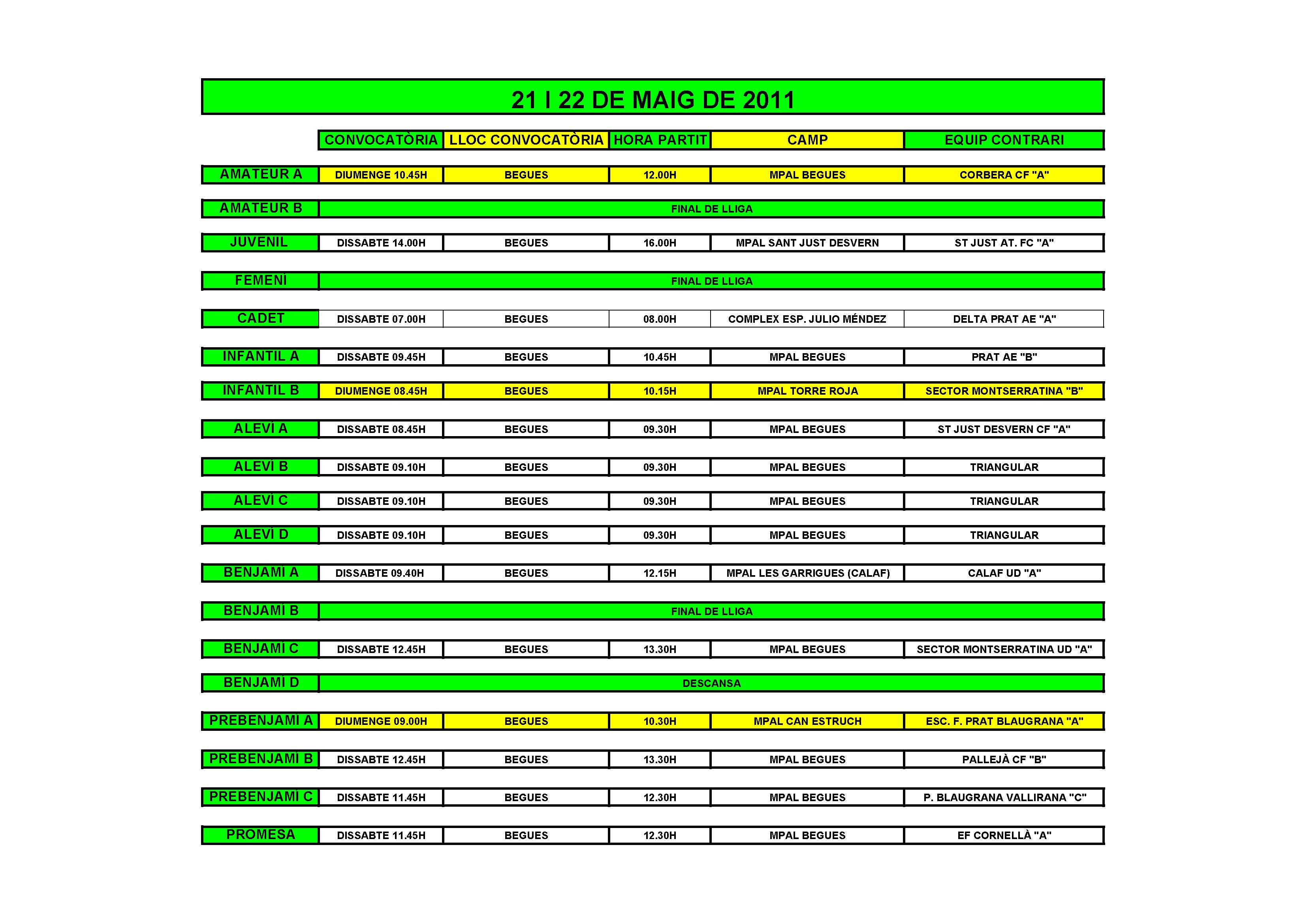 - Partits per al cap de setmana del 21 i 22 de Maig