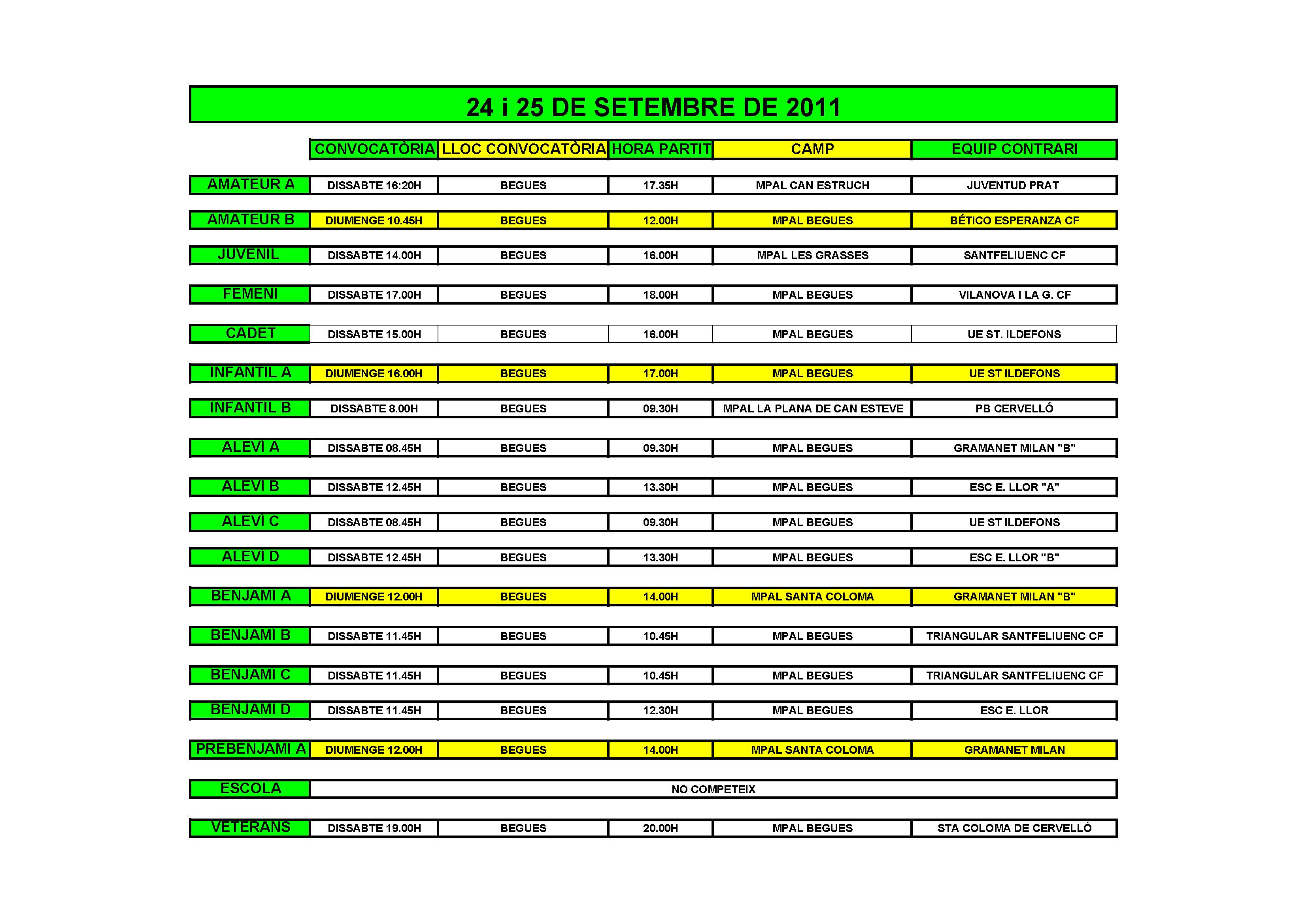 - Partits cap de setmana del 24 i 25 de Setembre