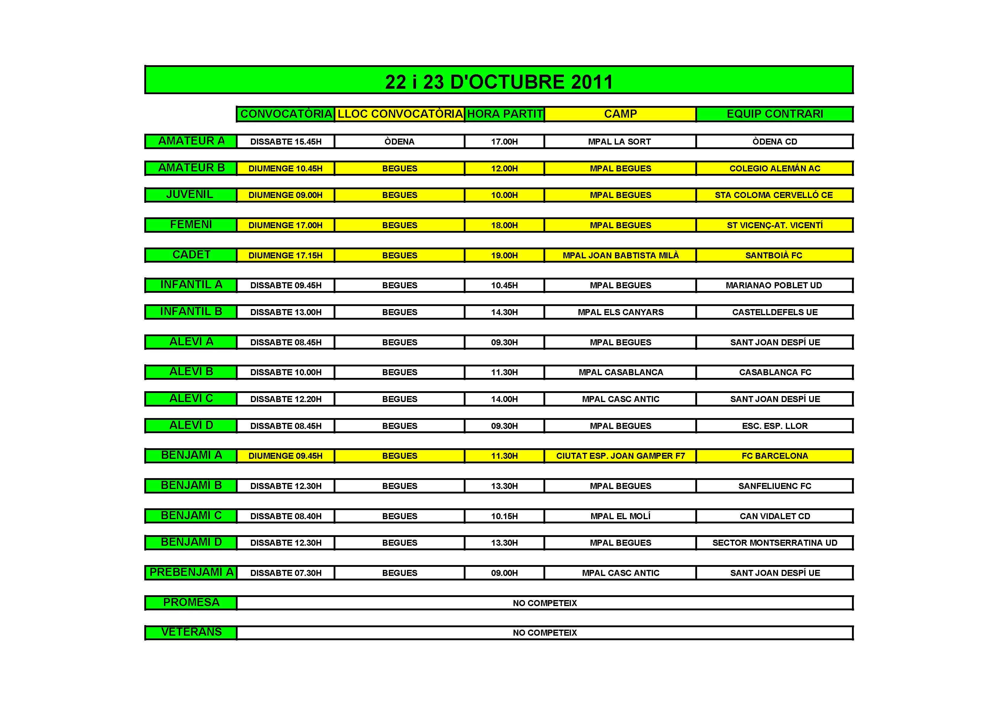- Partits el cap de setmana del 22 i 23 d'Octubre