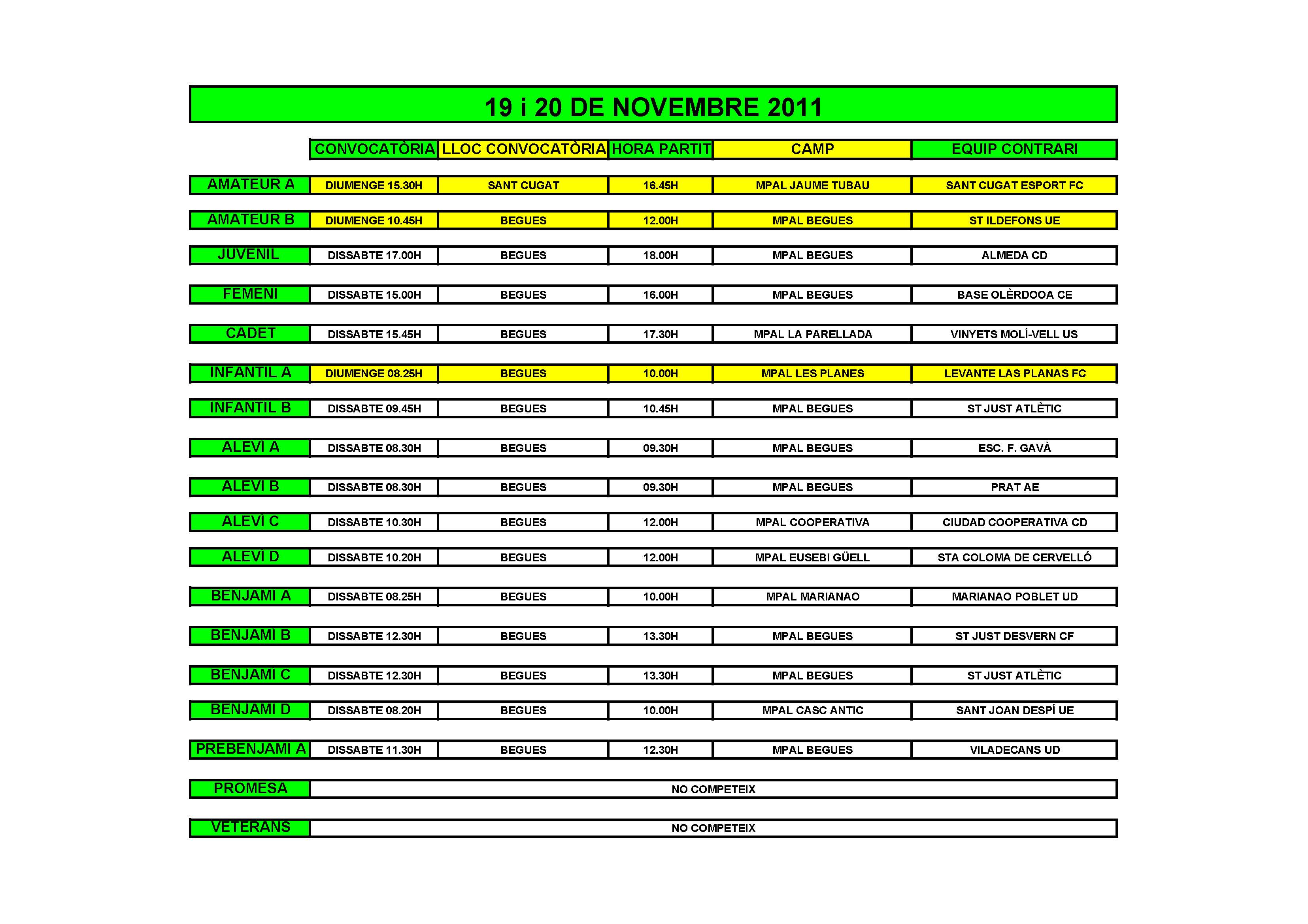 - Partits el cap de setmana del 19 i 20 de Novembre