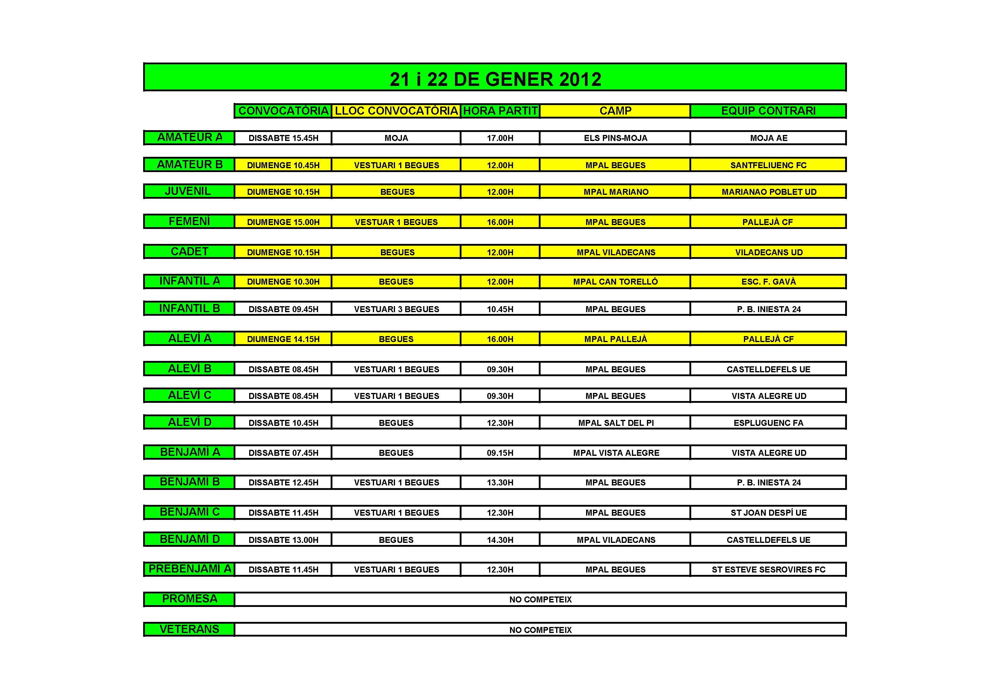 - Partits per al cap de setmana del 21 i 22 de Gener