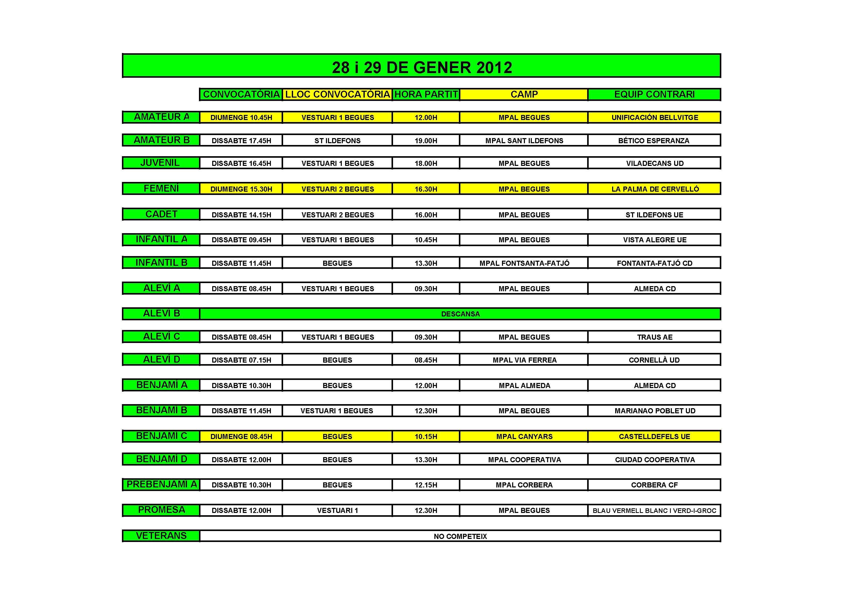 - Partits per al cap de setmana del 28 i 29 de gener