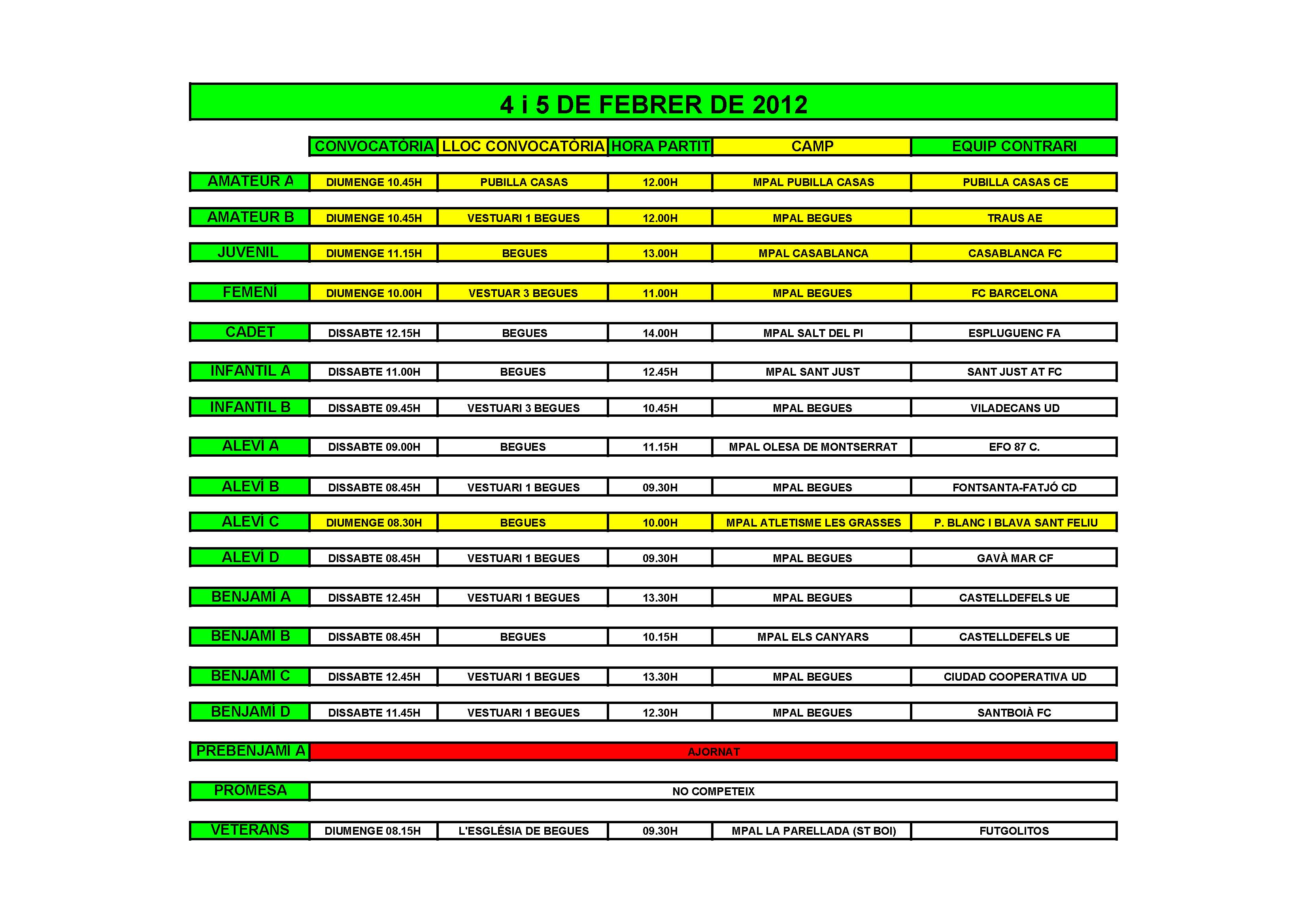 - Partits el cap de setmana del 4 i 5 de Febrer
