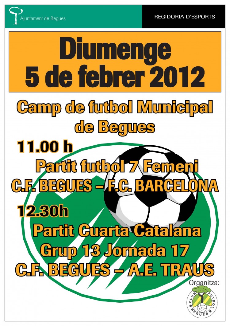 Aquest diumenge tindrem doble sessió de futbol, a les 11h l'equip femení jugarà contra el Barça i desprès l'amateur B intentarà continuar amb el bon ritme contra el Traus A.E. un rival molt fort de la categoria.