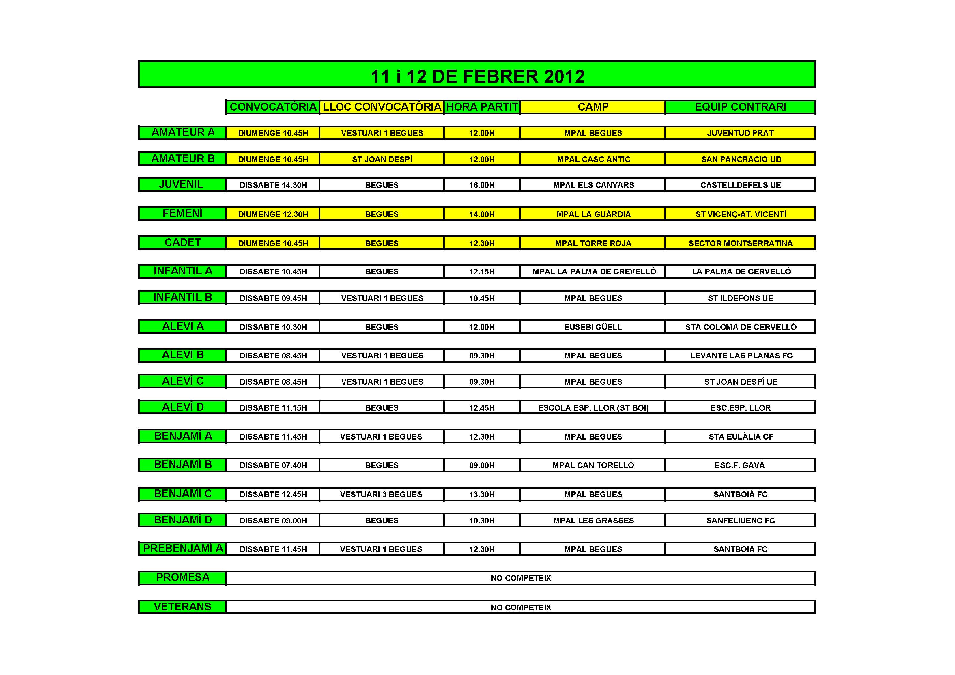 - Partits el cap de setmana de l'11 i 12 de Febrer