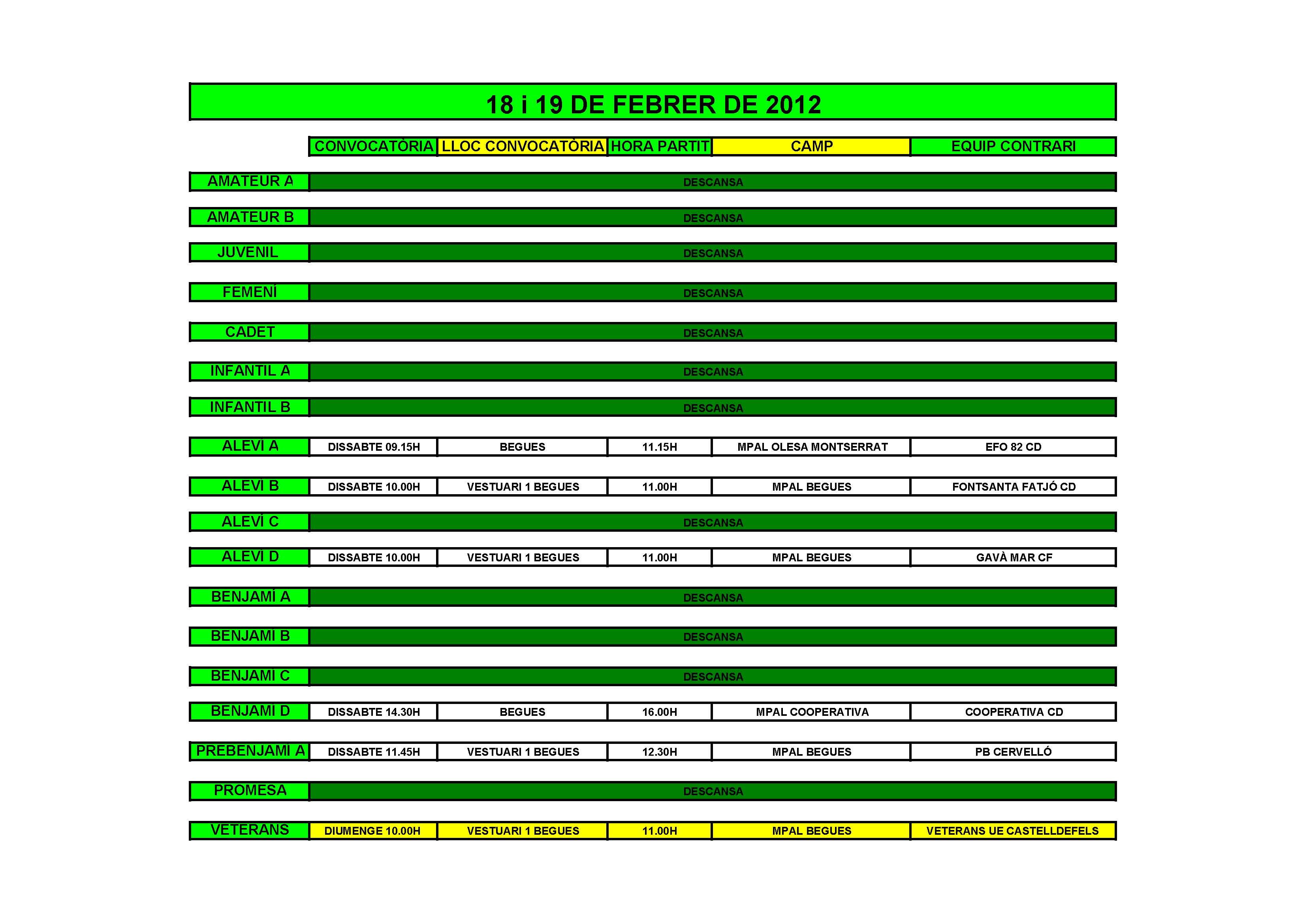 - Partits per al cap de setmana del 18 i19 de Febrer