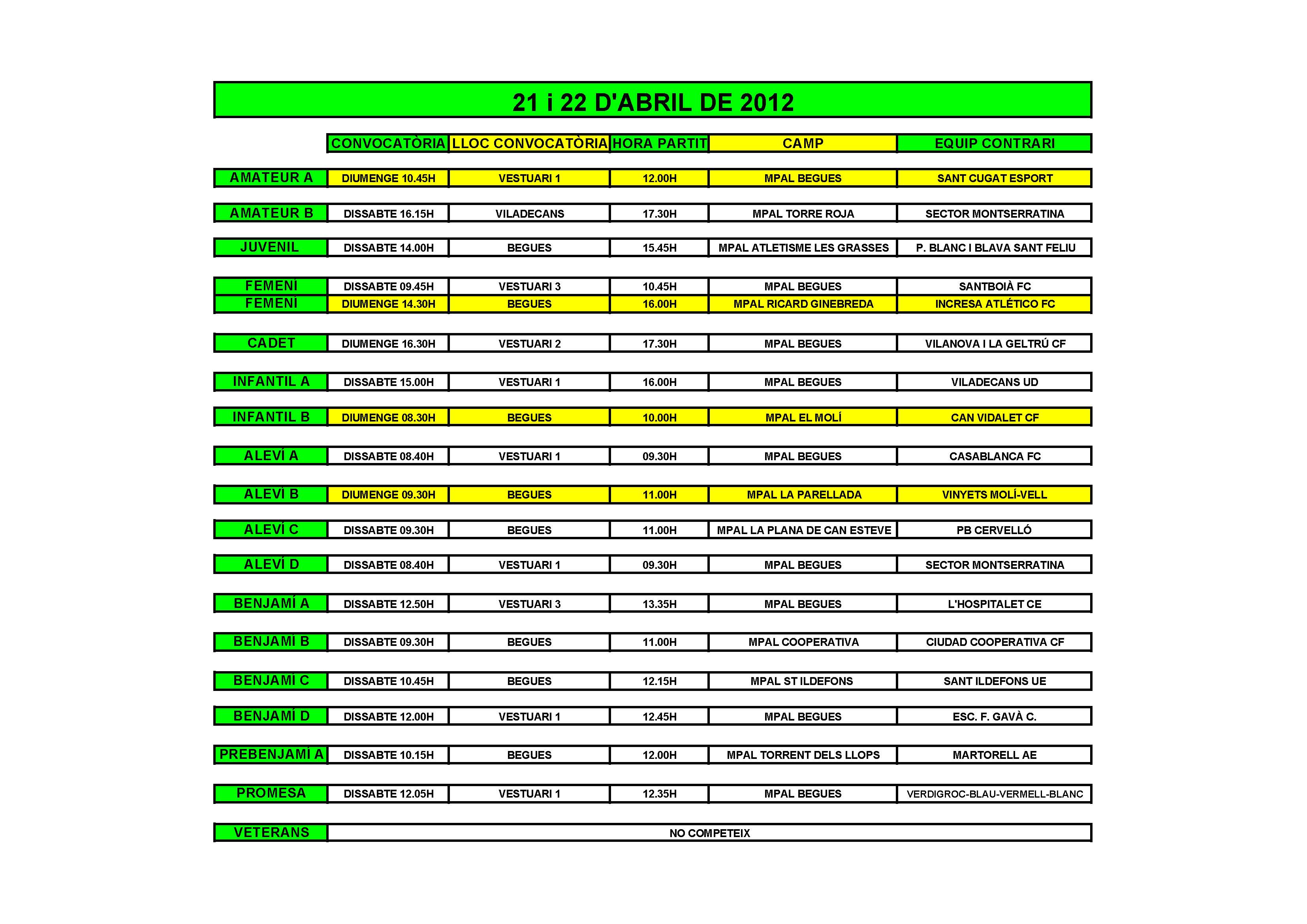 Partits per al cap de setmana del 21 i 22 d'Abril