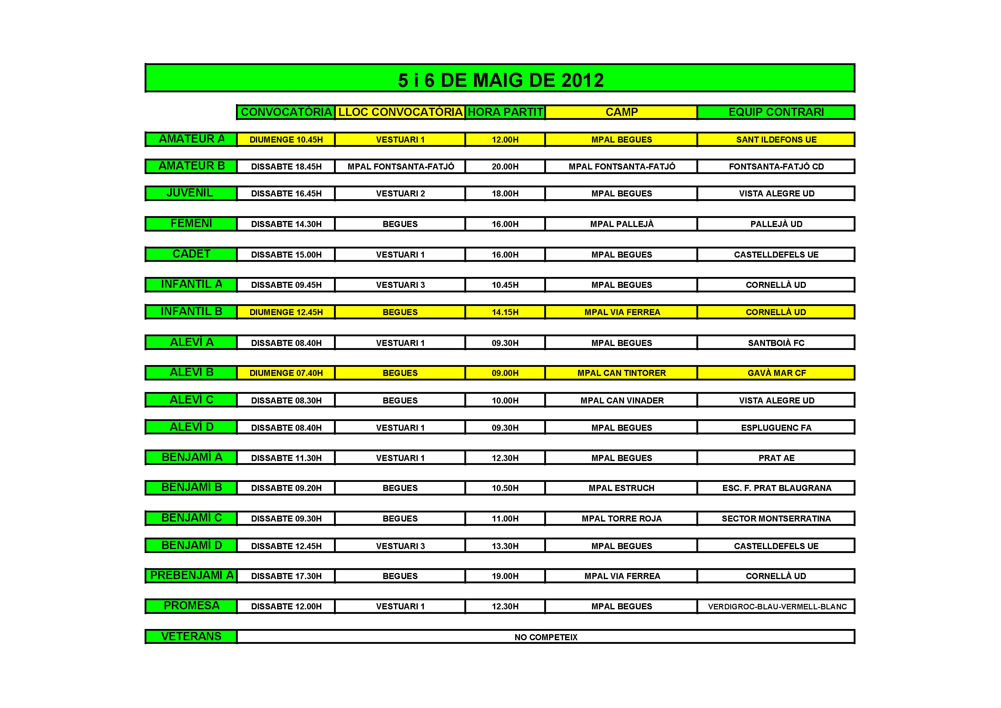 - Partits per al cap de setmana del 5 i 6 de Maig