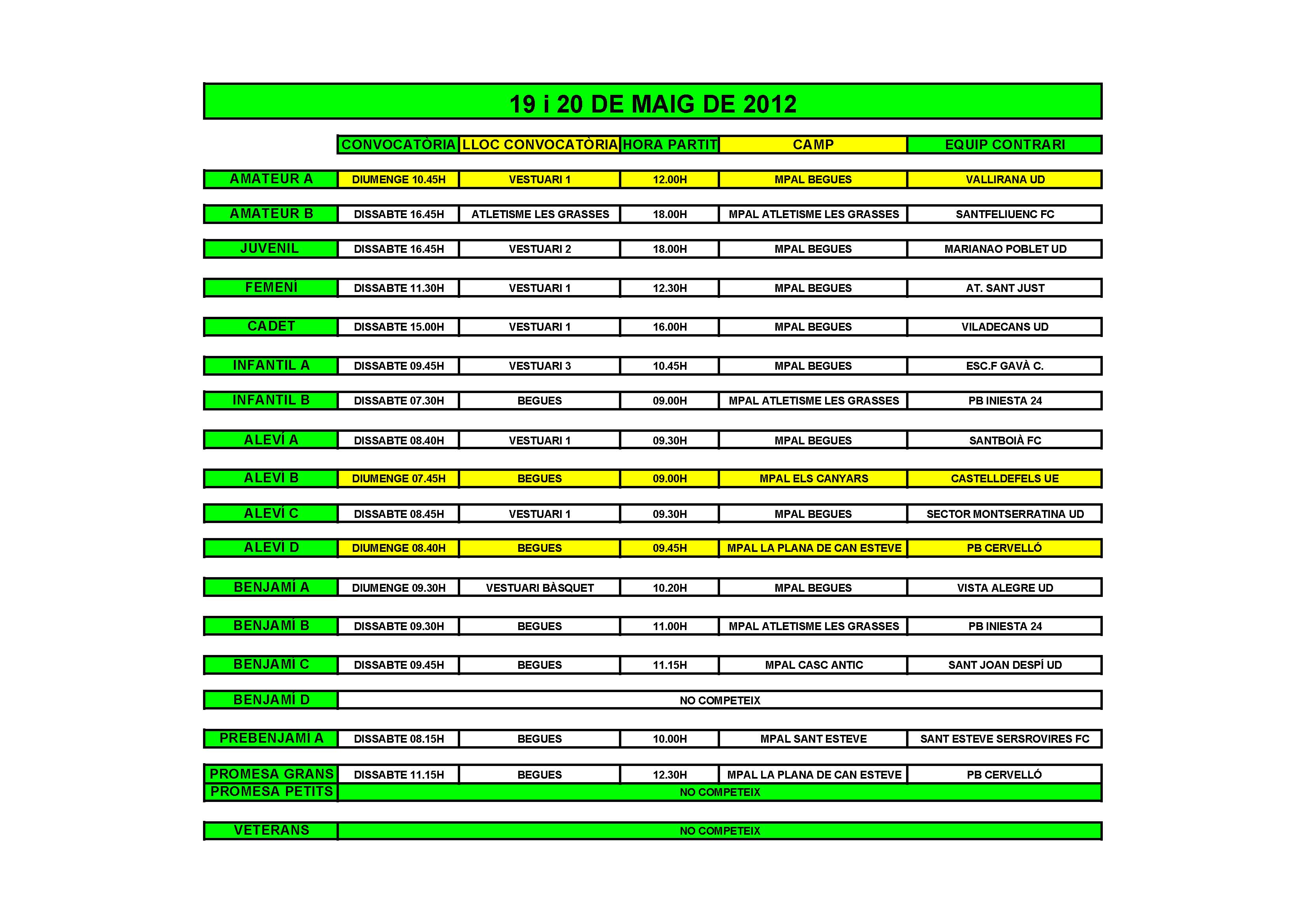 - Partits per al cap de setmana del 19 i 20 de Maig