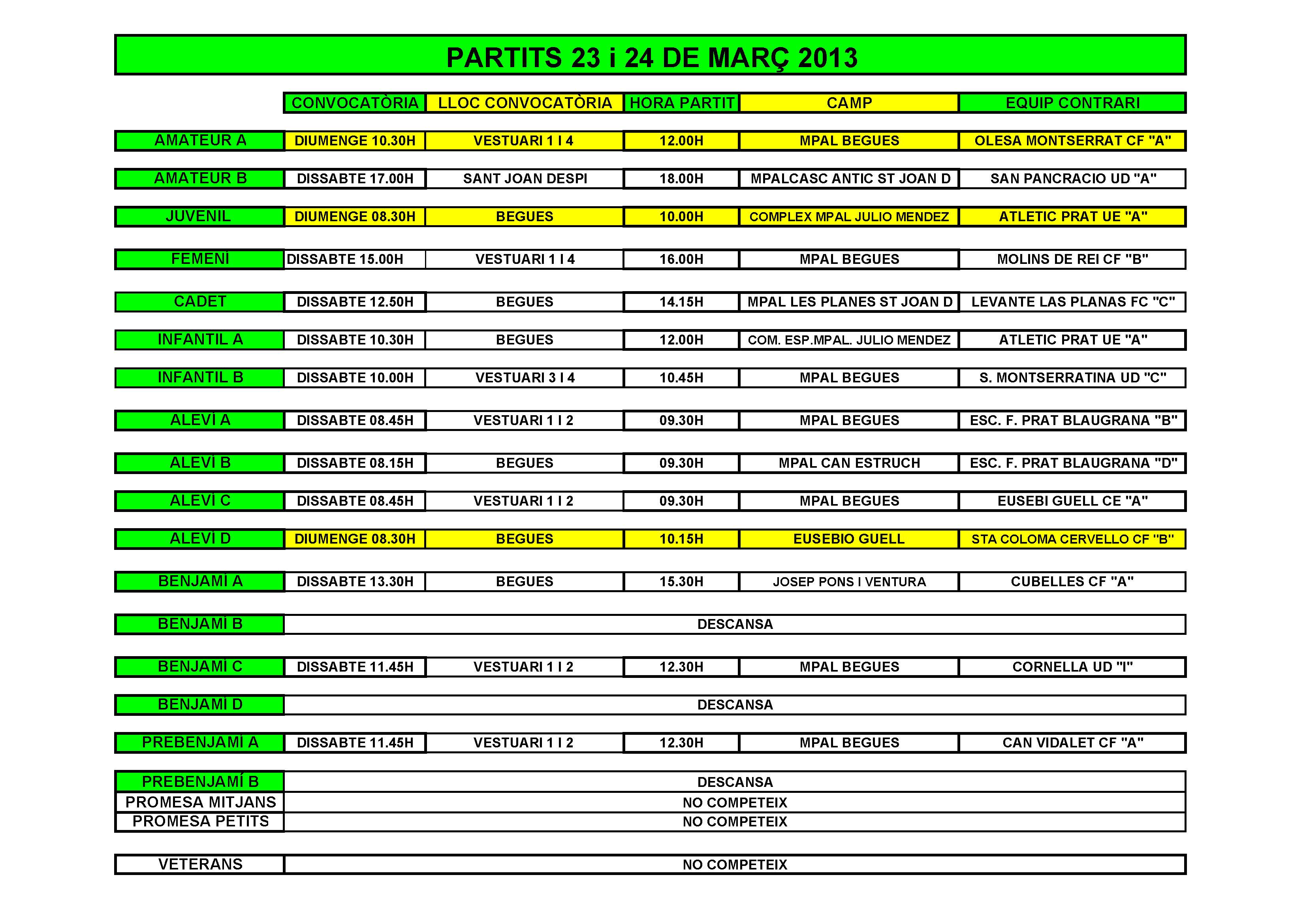 - Partits per al cap de setmana del 23 i 24 de Març