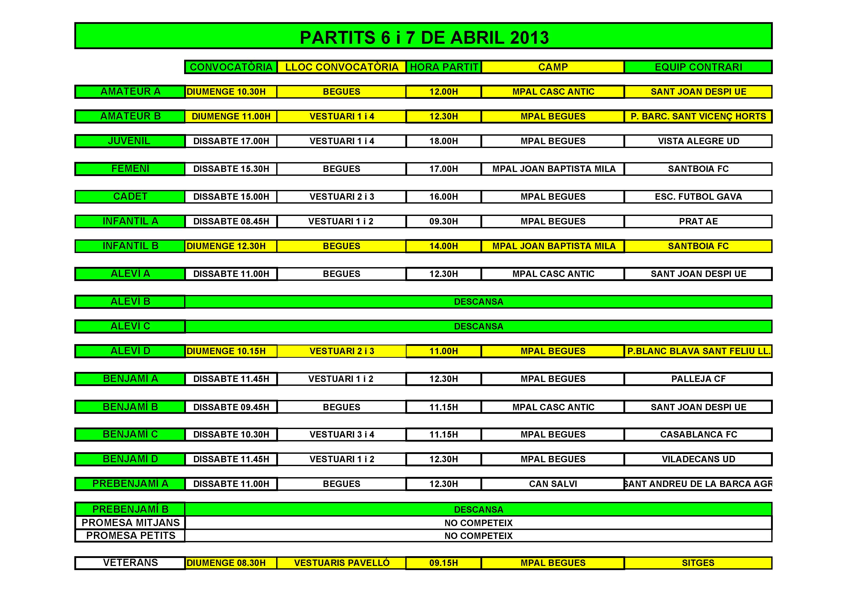 - Partits per al cap de setmana del 6 i 7 d'Abril