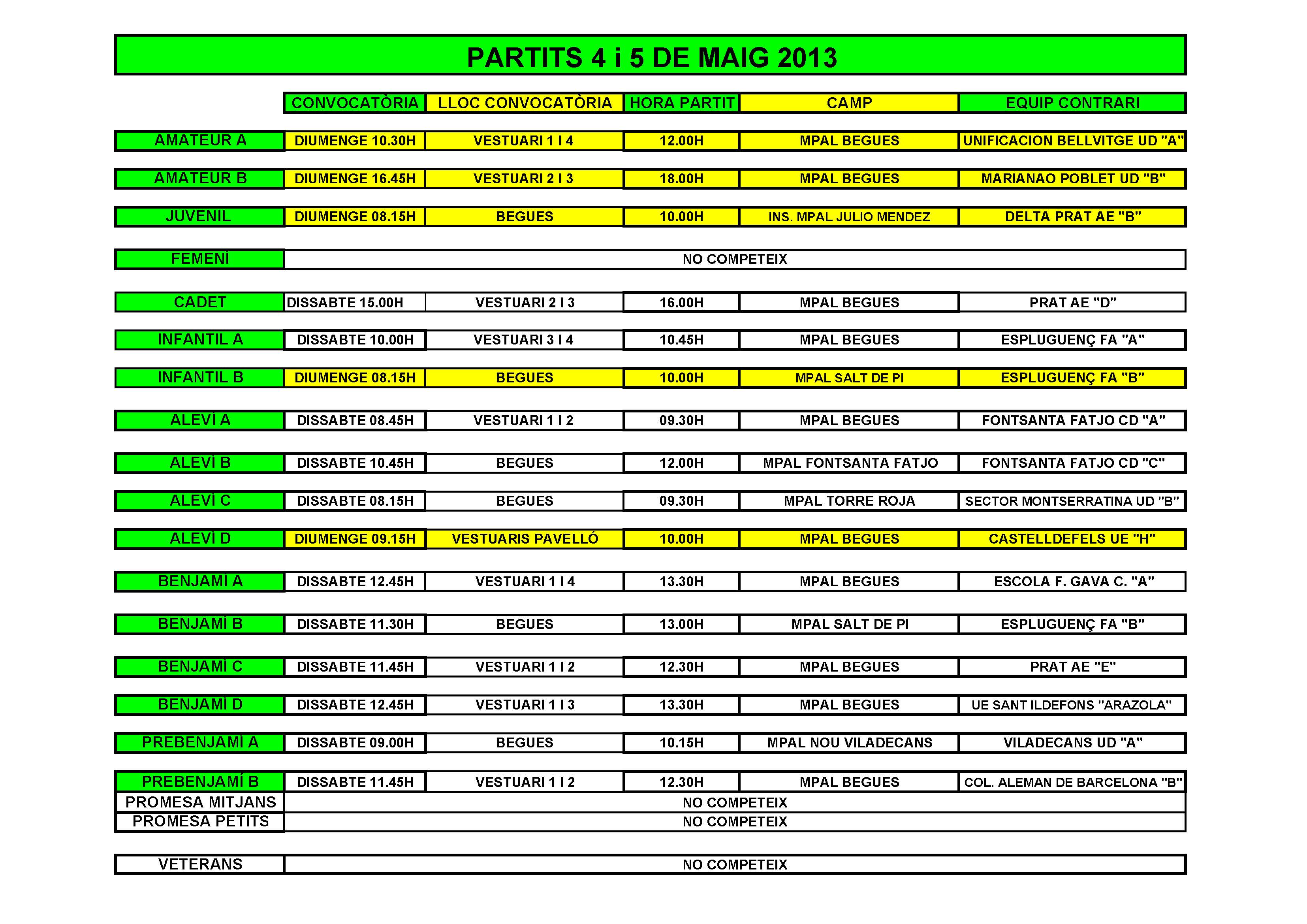 - Partits per al cap de setmana del 4 i 5 de Maig