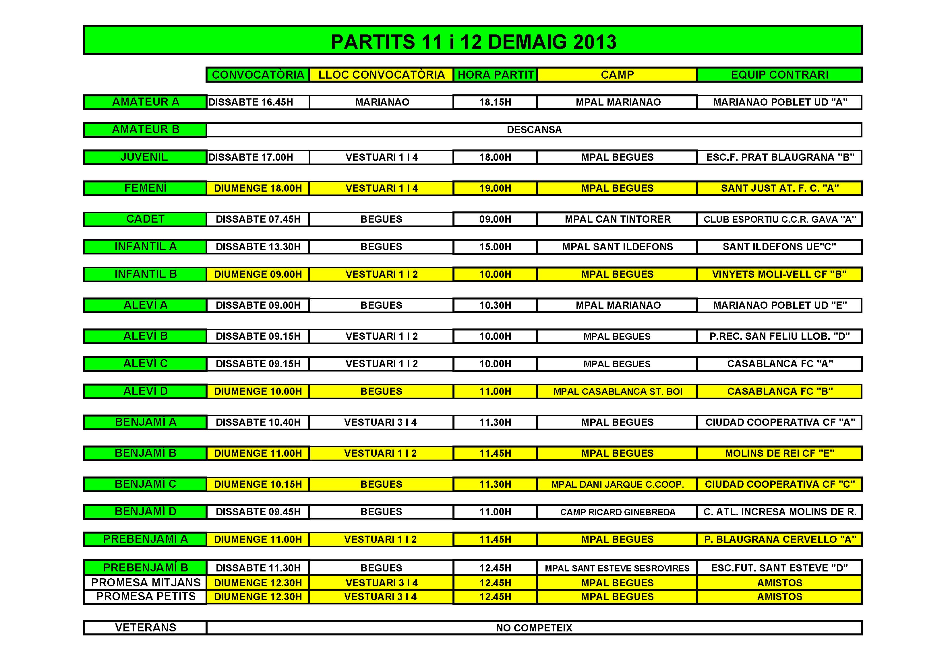 Partits per al cap de setmana 10 i 11 de Maig
