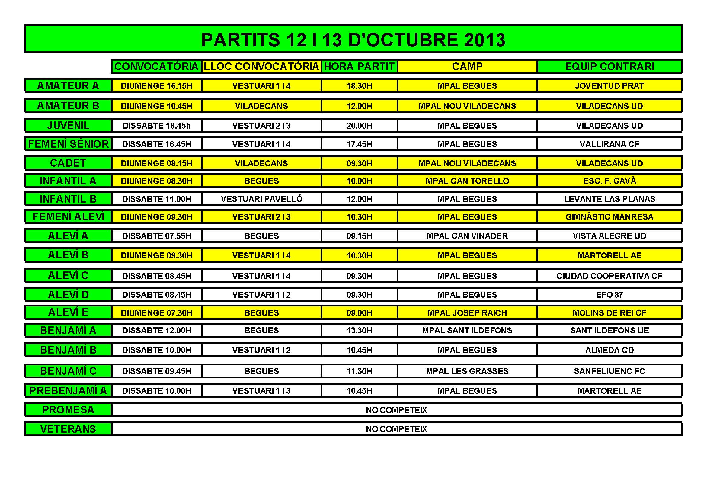 - Calendari de partits per al cap de setmana del 12 i 13 d'Octubre