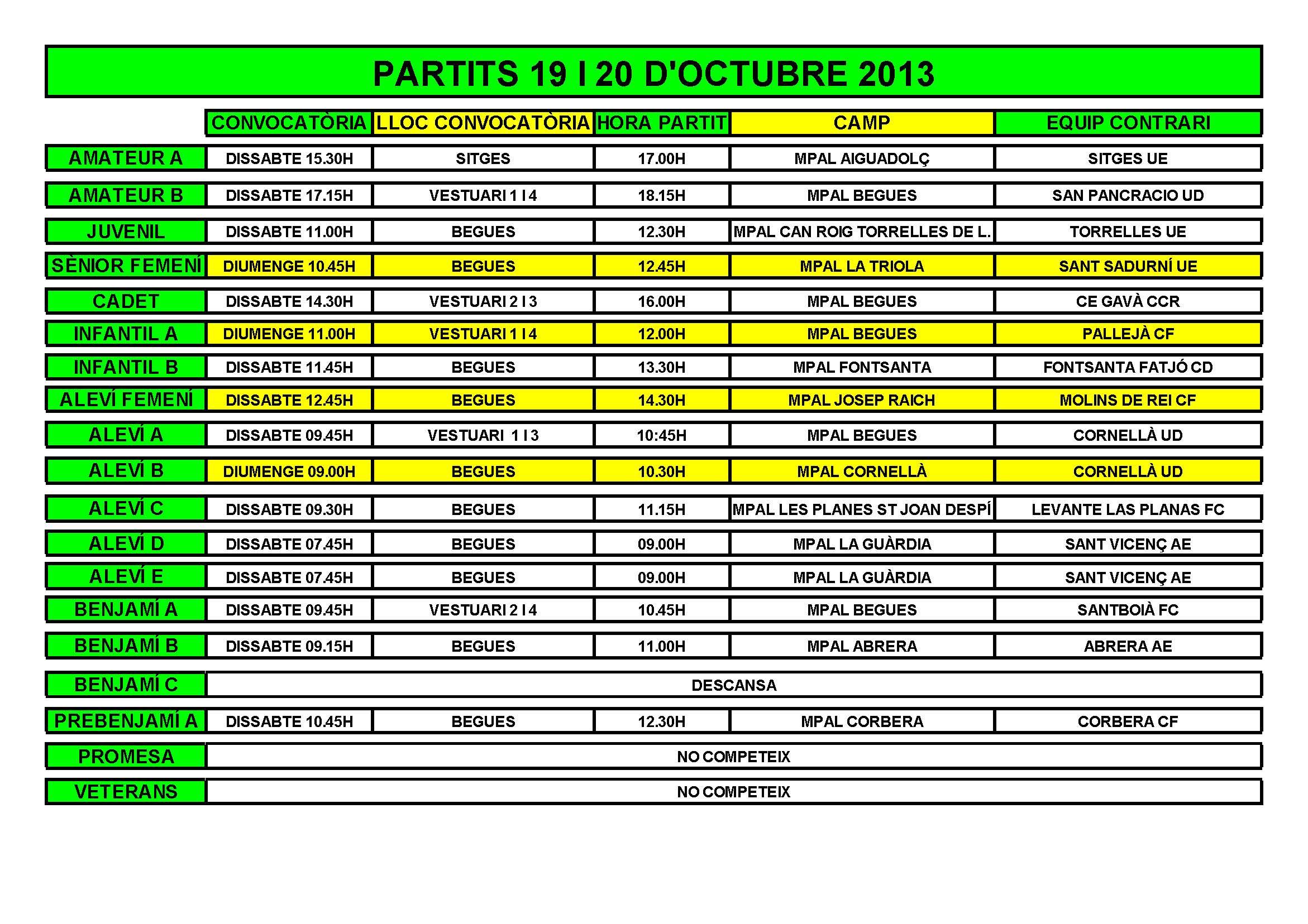 Partits per al cap de setmana del 19 i 20 d'Octubre