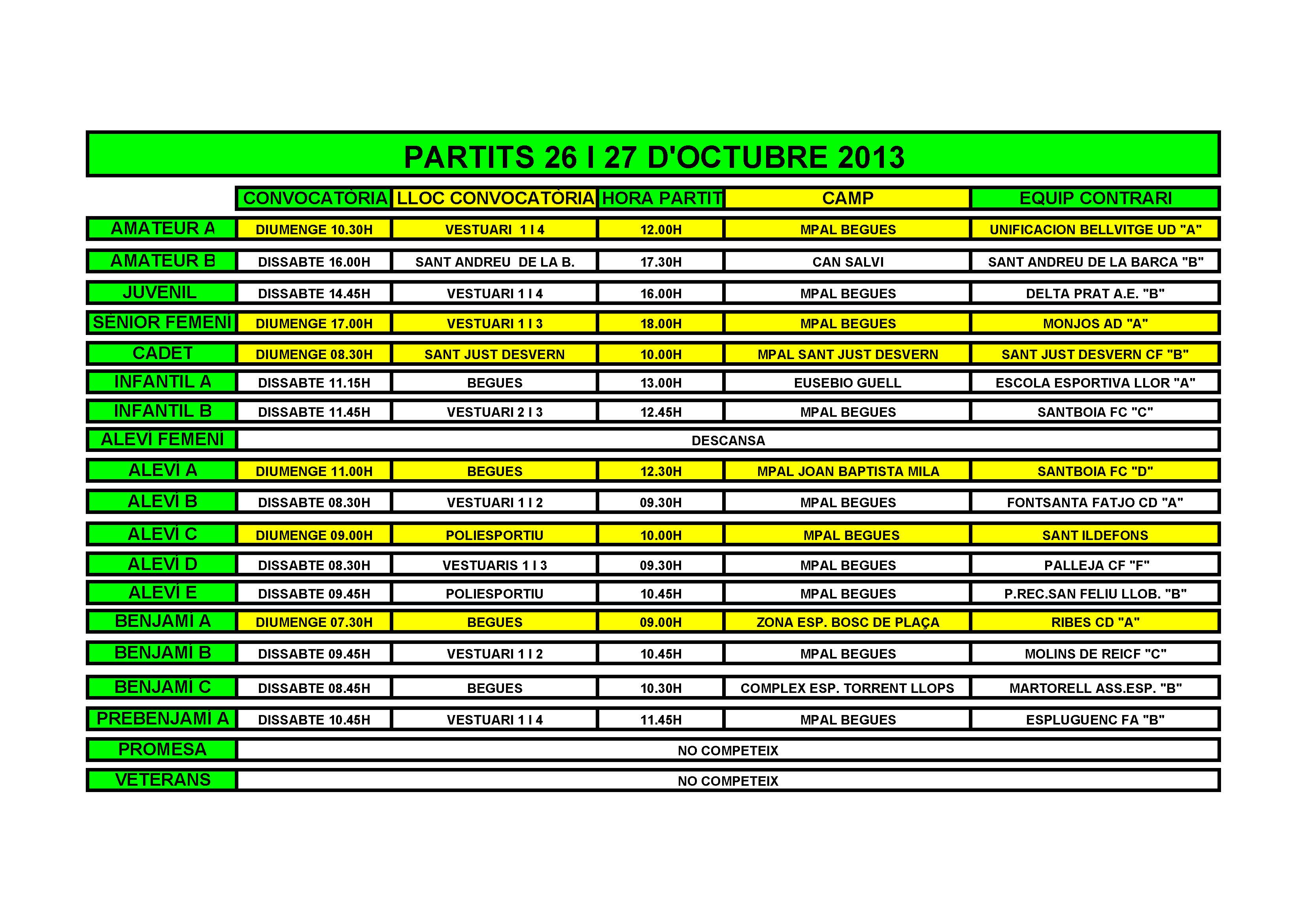 Calendari de partits per al cap de setmana del 26 i 27 d'Octubre