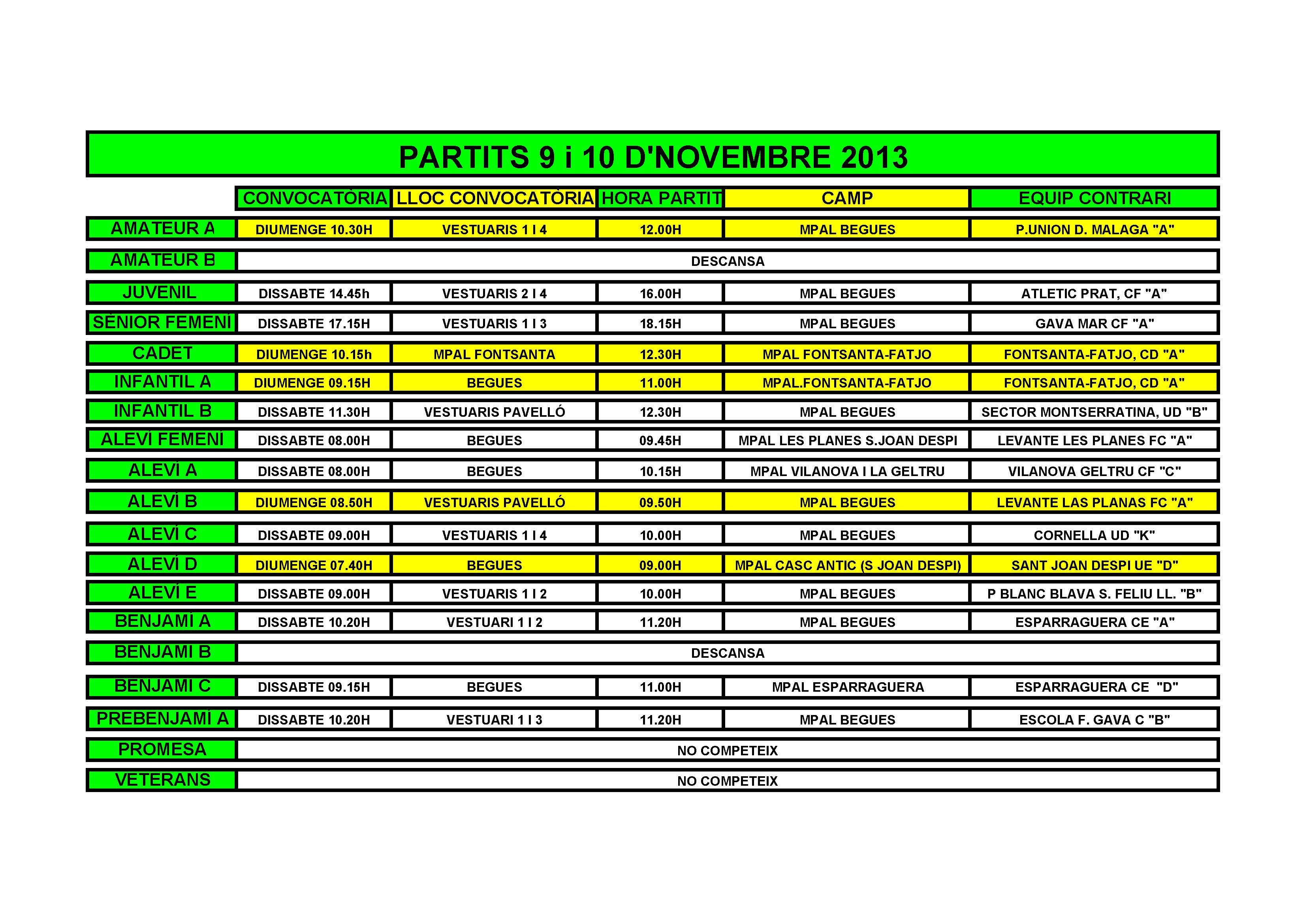 - Calendari de partits per al cap de setmana del 9 i 10 de Novembre