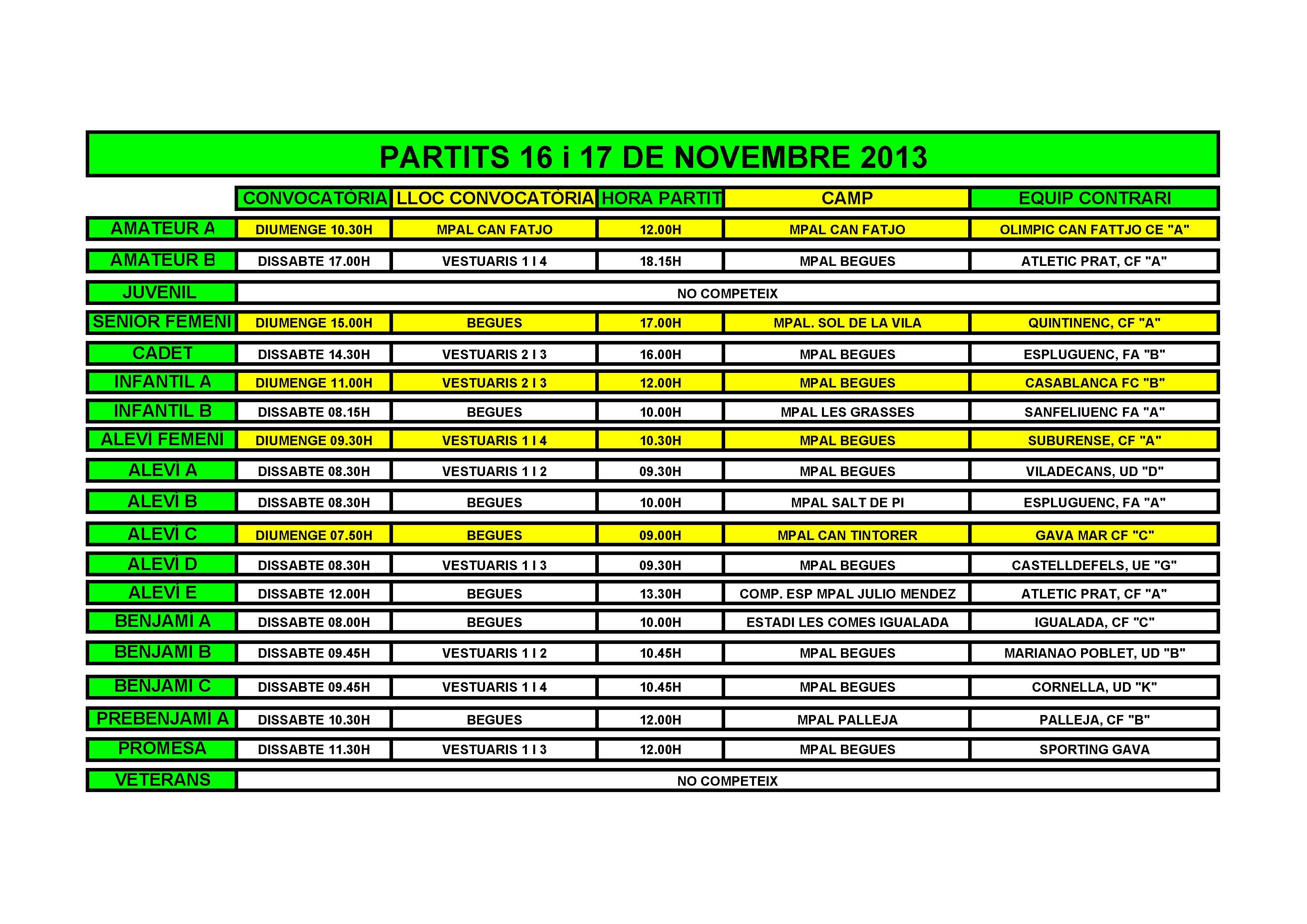 Partits per al cap de setmana del 16 i 17 de Novembre