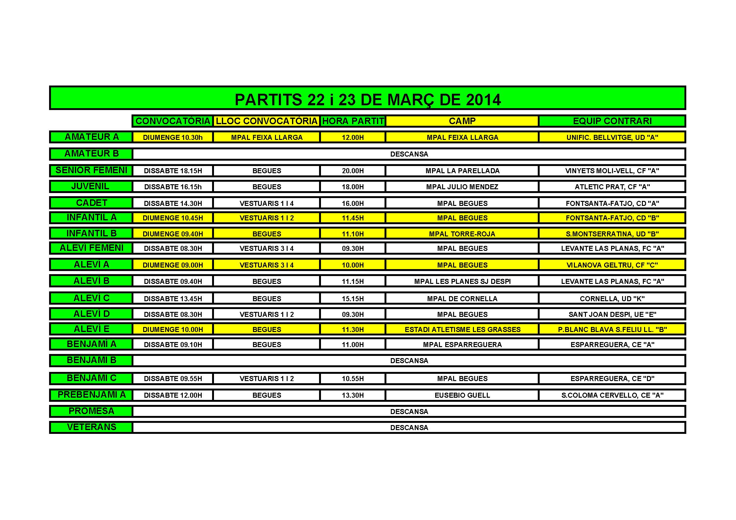 - Calendari de partits per al cap de setmana de 22 i 23 de Març