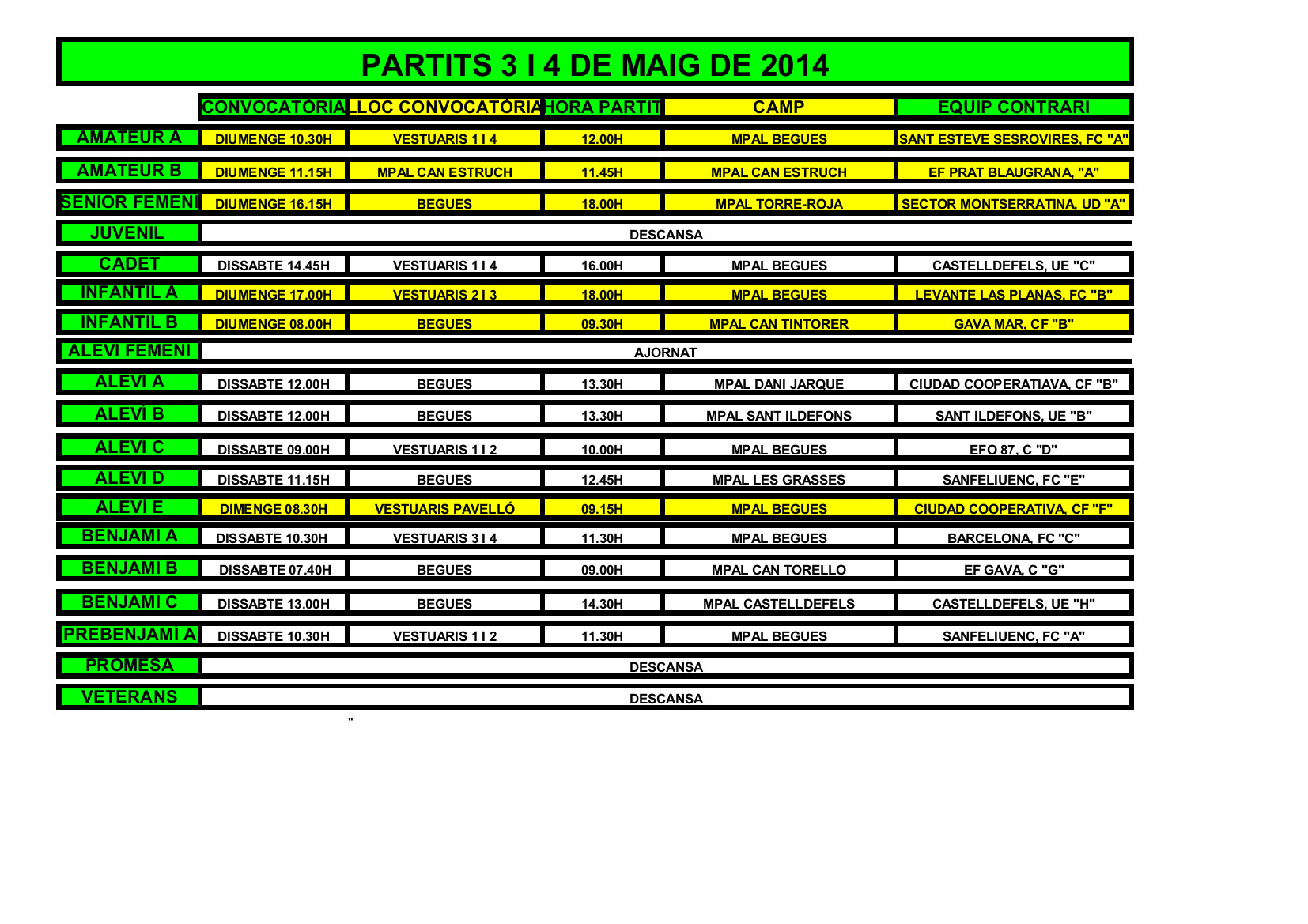 Calendari de partits per al cap de setmana del 3 i 4 de Maig
