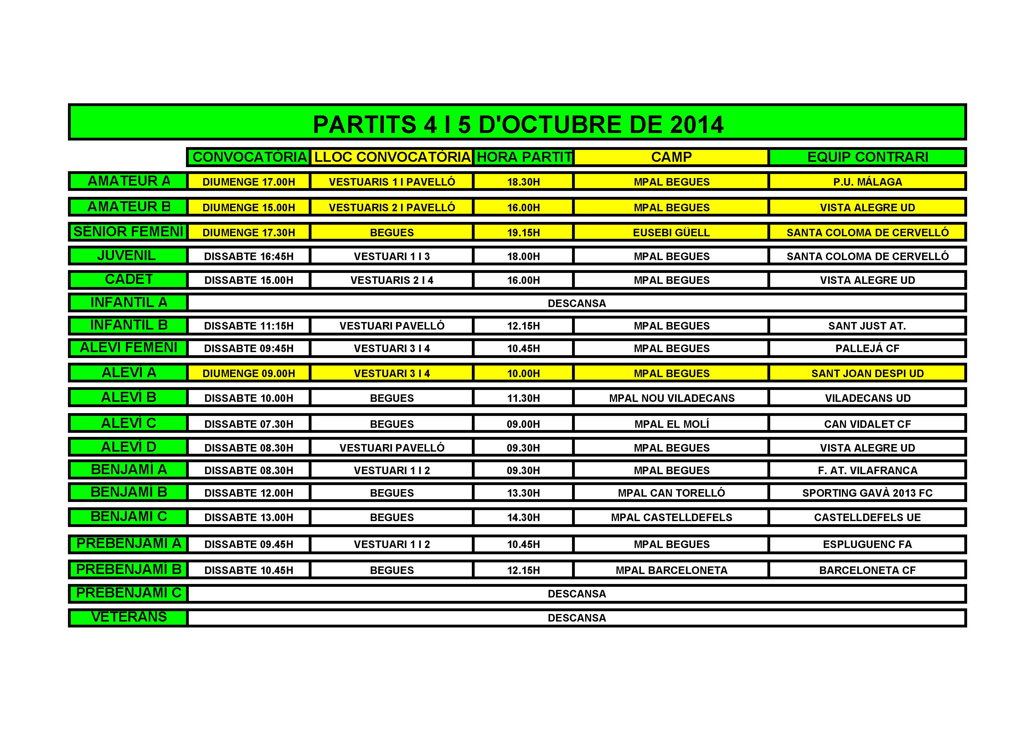 - Calendari de partits per al cap de setmana del 4 i 5 d'Octubre