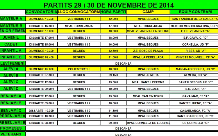 - Partits per al cap de setmana del 29 i 30 de novembre