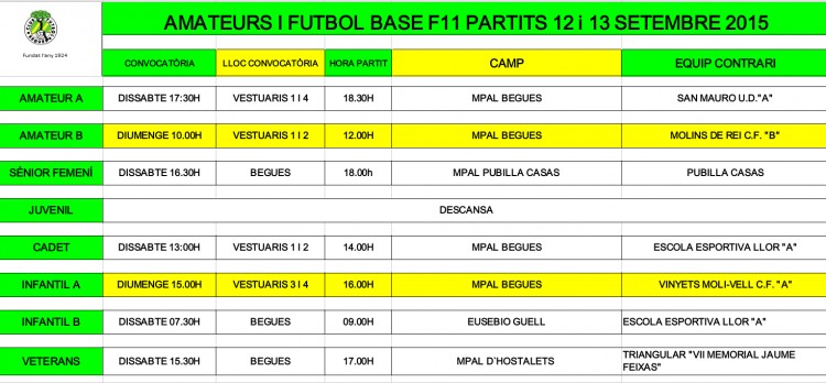 Partits per al cap de setmana del 12 i 13 de setembre