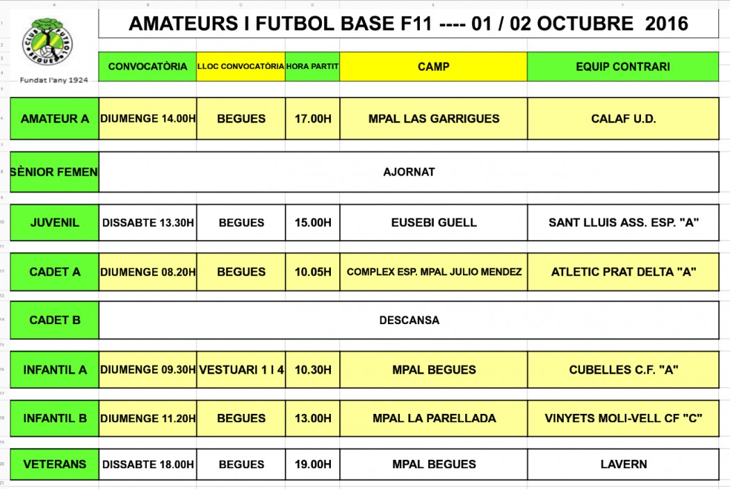 Partits F11 el cap de setmana del 1 i 2 d'Octubre