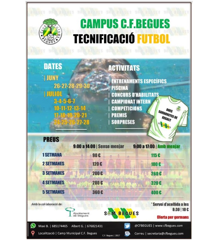 Ja us podeu apuntar al Campus d'estiu de tecnificació del CFBegues, que des de finals de juny i tot el juliol us ofereix la oportunitat de gaudir d'amics, futbol i aprenentatge continuat!