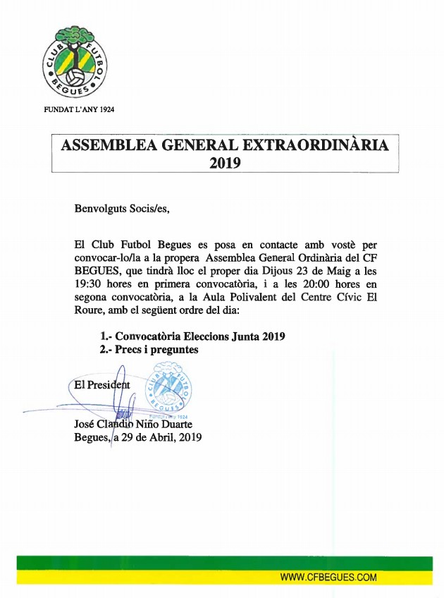 convocar-lo/la a la propera Assemblea General Ordinària del CF
