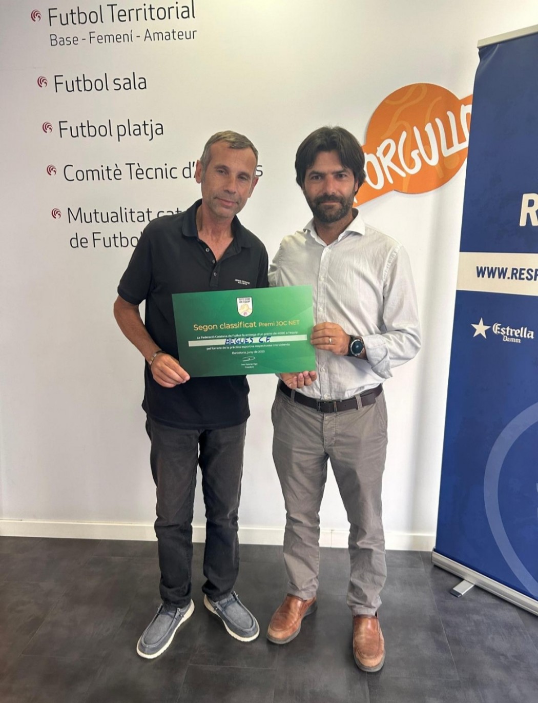 Avui el president del CFBegues, Carles Moreno, ha anat a la seu de la Federació Catalana de Futbol a recollir un premi aconseguit la temporada passada pel nostre primer equip: el segon lloc al premi Joc Net. Felicitats a l'equip, per un reconeixement que fomenta l'esportivitat i el bon ambient al món del futbol, valors que el nostre club vol agafar per bandera