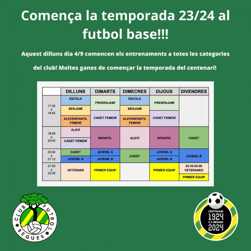 Aquest dilluns comencen els entrenaments del futbol base del club. Moltes ganes de començar la temporada del centenari!
