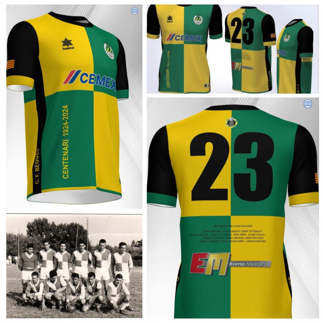 A mes hem incorporat al disseny el nostre logo del centenari i altres petits detalls relacionats amb la trajectòria del CF Begues.