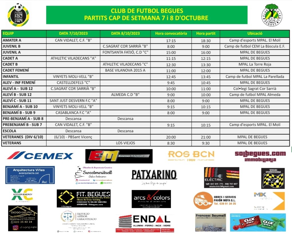 - Partits dels nostres equips el 7 i 8 d'octubre