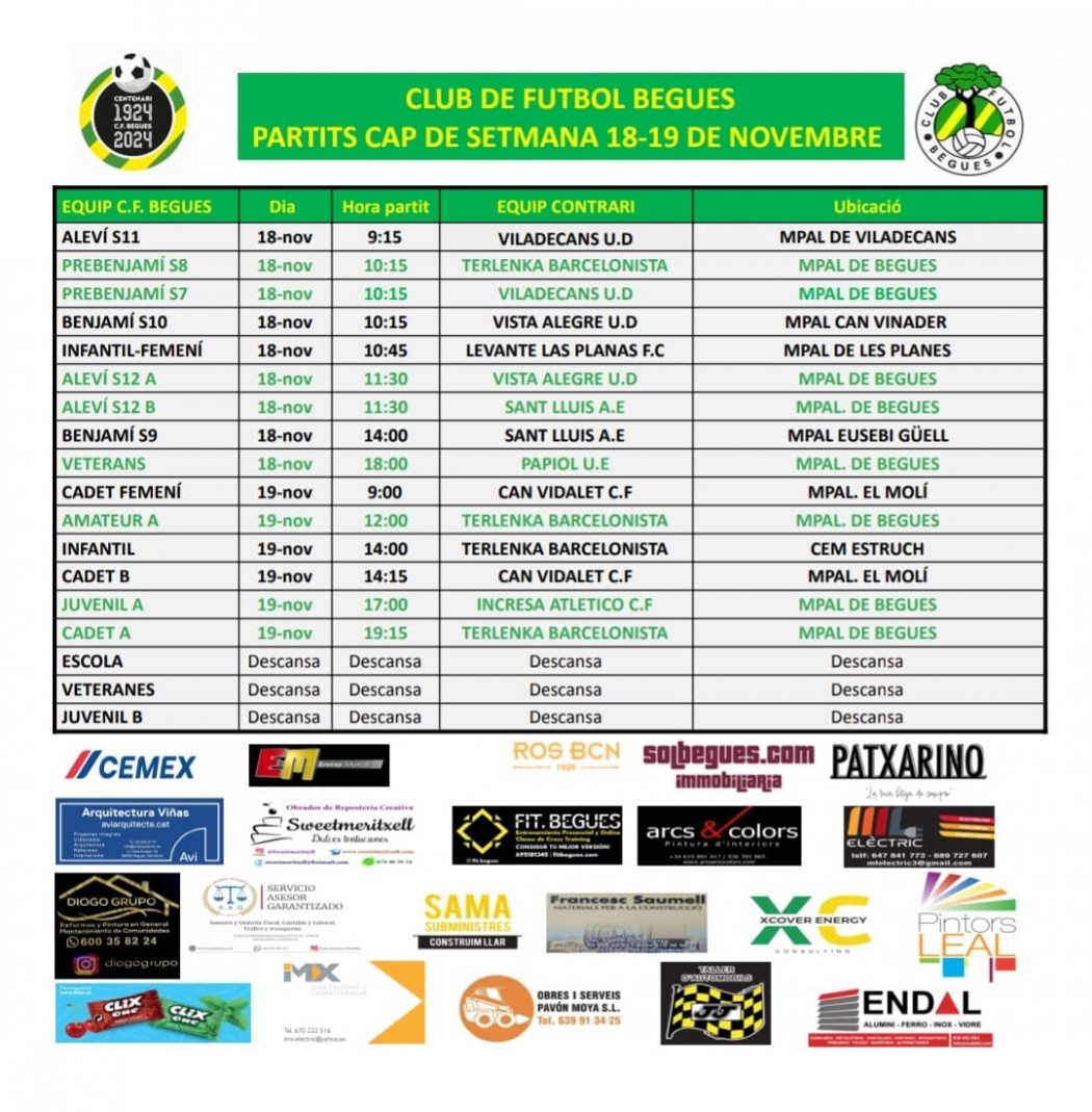 Partits dels nostres equips el cap de setmana del 18 i 19 de novembre. Sort a tots i totes!!