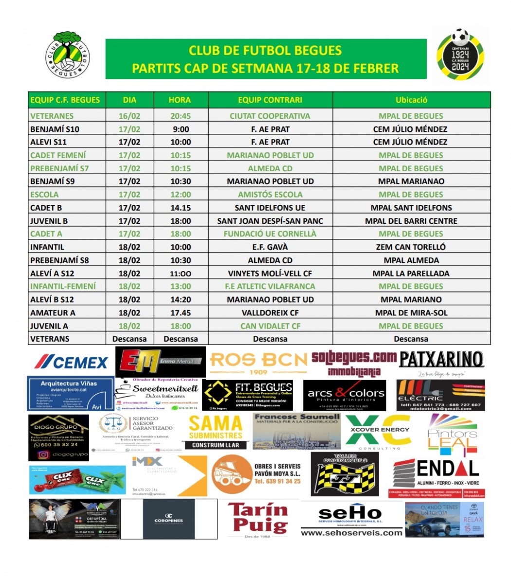 Partits dels nostres equips aquest cap de setmana del 17 i 18 de febrer. Com a novetat, primer amistós de l'Escola!