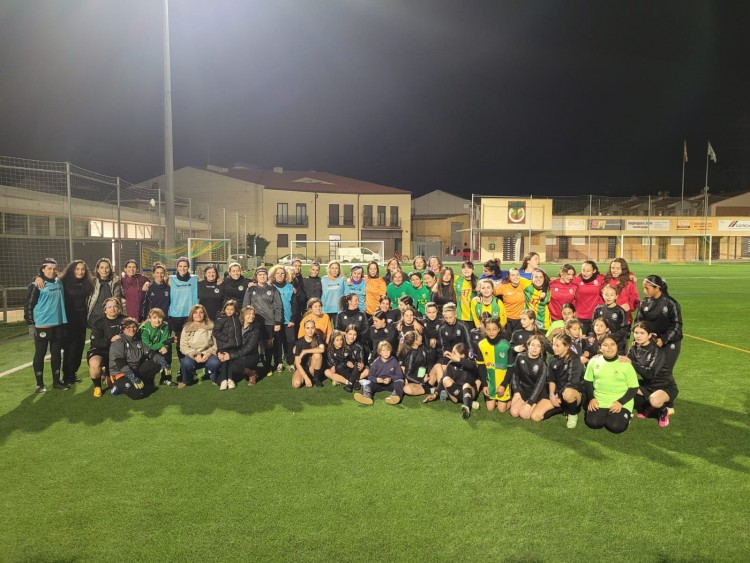 Gran jornada viscuda al camp en el dia de la Dona! Més de 70 jugadores s'han reunit per a participar de la jornada de futbol reivindicativa. Membres de les Veteranes del club, Cadets, Infantils, Benjamins, Sènior femení i del Futbol Sala, directives més alguna altre que s'ha apuntat han gaudit d'un mega-entrenament conjunt, precedit d'un parlament de la Vicepresidenta Irene López i un pica-pica posterior