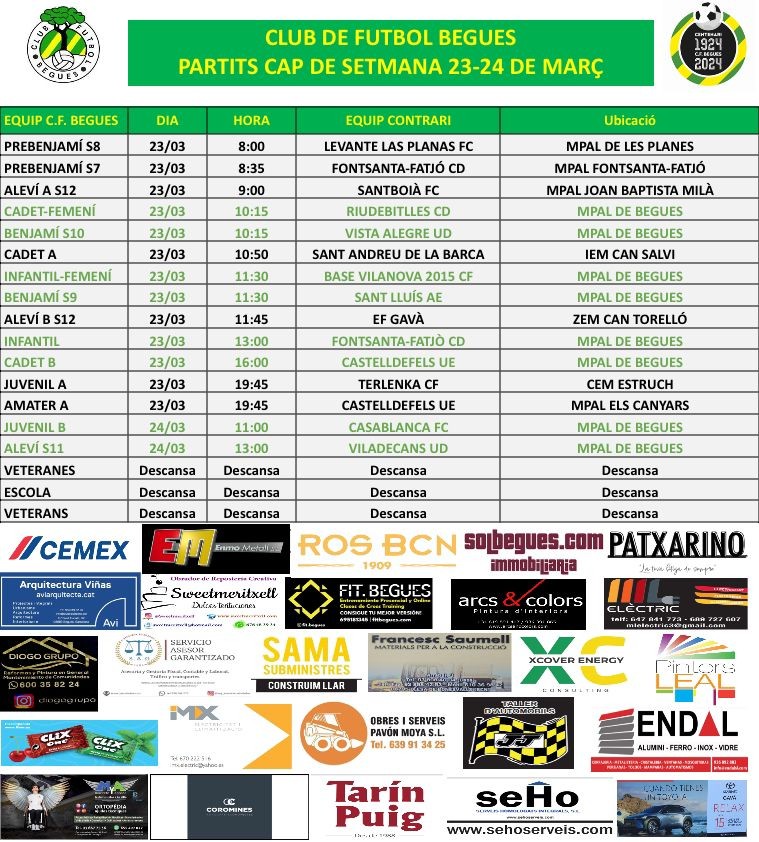 - Partits dels nostres equips el 23 i 24 de març