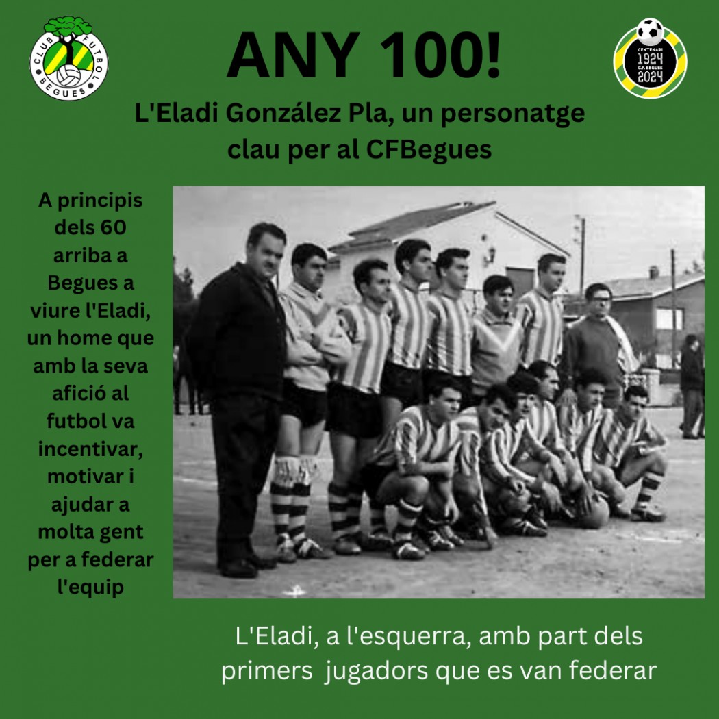 A principis dels 60 arriba a Begues a viure l'Eladi González Pla, un home que amb la seva afició al futbol va incentivar, motivar i ajudar a molta gent per a federar l'equip