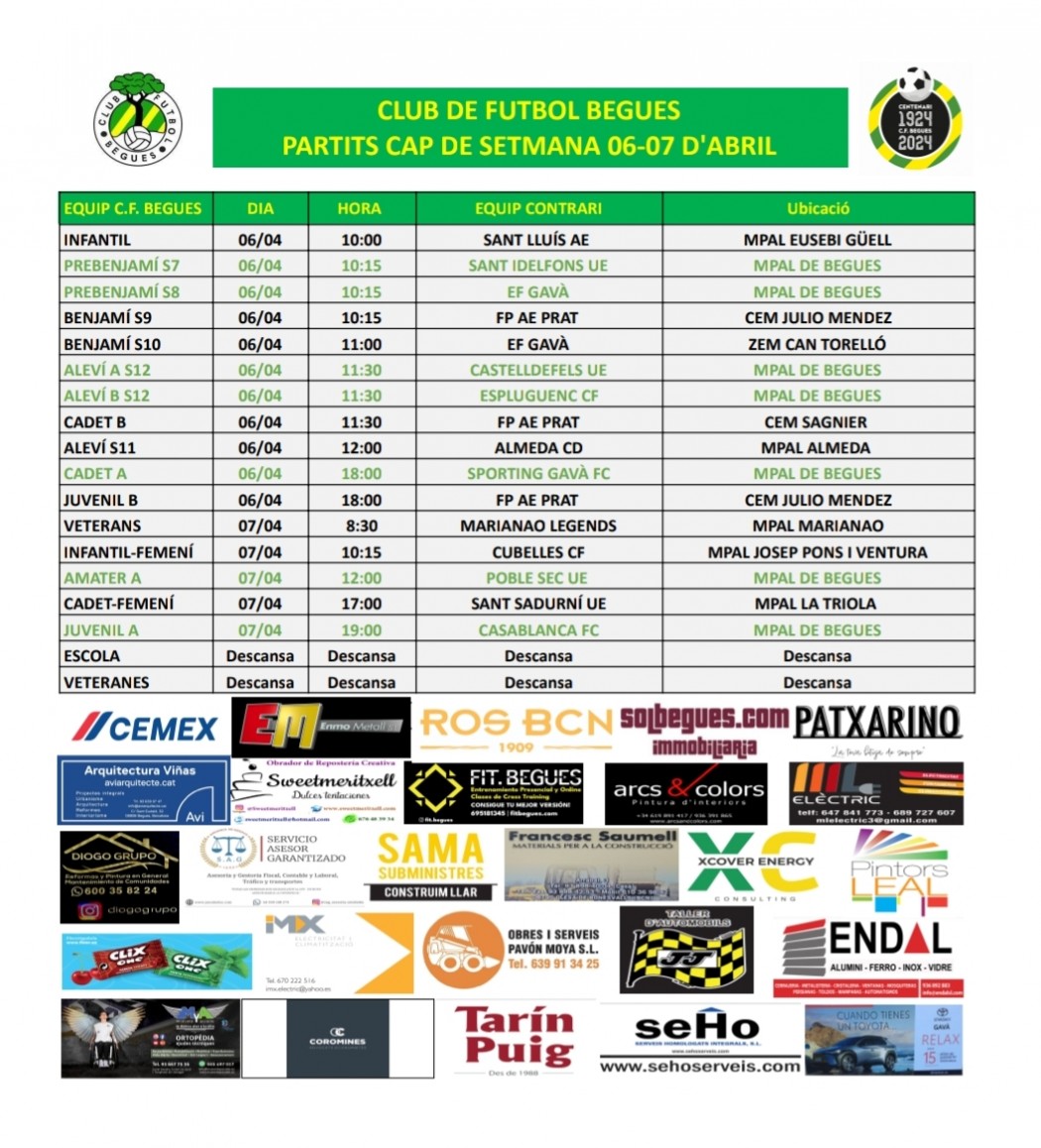 - Partits dels nostres equips el cap de setmana del 6 i 7 d'abril